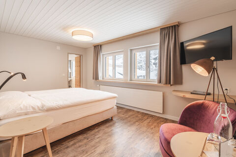 Unsere frisch renovierten Doppelzimmer sind mit neuen Boxspringbetten ausgestattet. Die Badezimmer sind grundsaniert und bieten Ihnen noch mehr Komfort. In den Deluxe Doppelzimmer mit Südbalkon geniessen Sie die herrliche Aussicht auf die Aroser Berglandschaft. Jedes Zimmer verfügt über Wi-Fi und einen grossen TV. Die integrierten USB-Ladestecker neben den Nachttischen sowie über dem Schreibtisch machen das Smartphoneladen noch bequemer.