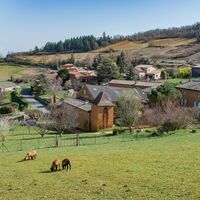 • Den Übergang über das Viadukt von Tacot mit Aussicht auf das Dorf und das Schloss von Jarnioux. In Theizé kannst du bis zum Schloss Rochebonne hinaufsteigen.