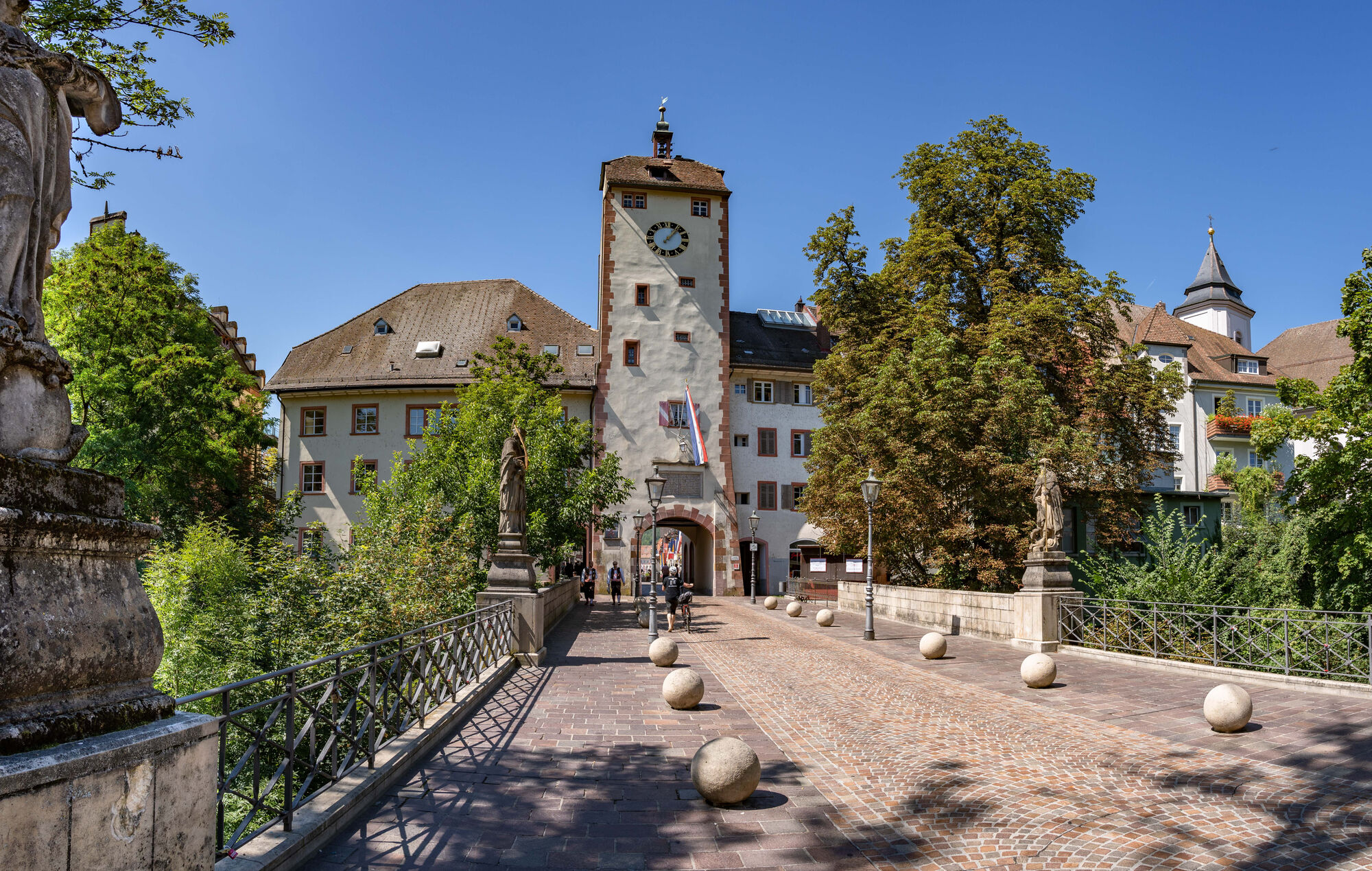 Die Radrundroute beginnt am Bahnhof in Waldshut. Bevor der Weg zum Rheinufer hinunterführt, macht und das prächtige Stadttor von Waldshut auf einen Blick in die mittelalterlich geprägte Kaiserstraße neugierig. Dann aber geht es mit leicht angezogenen Bremsen bergab zum Rhein. An der Schiffsanlegestelle wartet das Ausflugs- und Fährgastschiff Waldshut-Tiengen auf Grenzgänger.