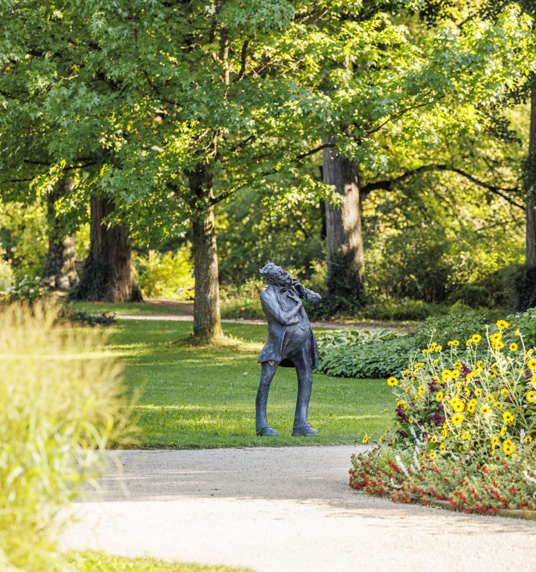 Die Scheffelstatue des Singener Künstlers Gero Hellmuth wurde 2014 mit Blick auf den Hohentwiel ausgestellt. Sie zeigt den Dichter im Augenblick der Inspiration für seinen Roman "Ekkehard".
