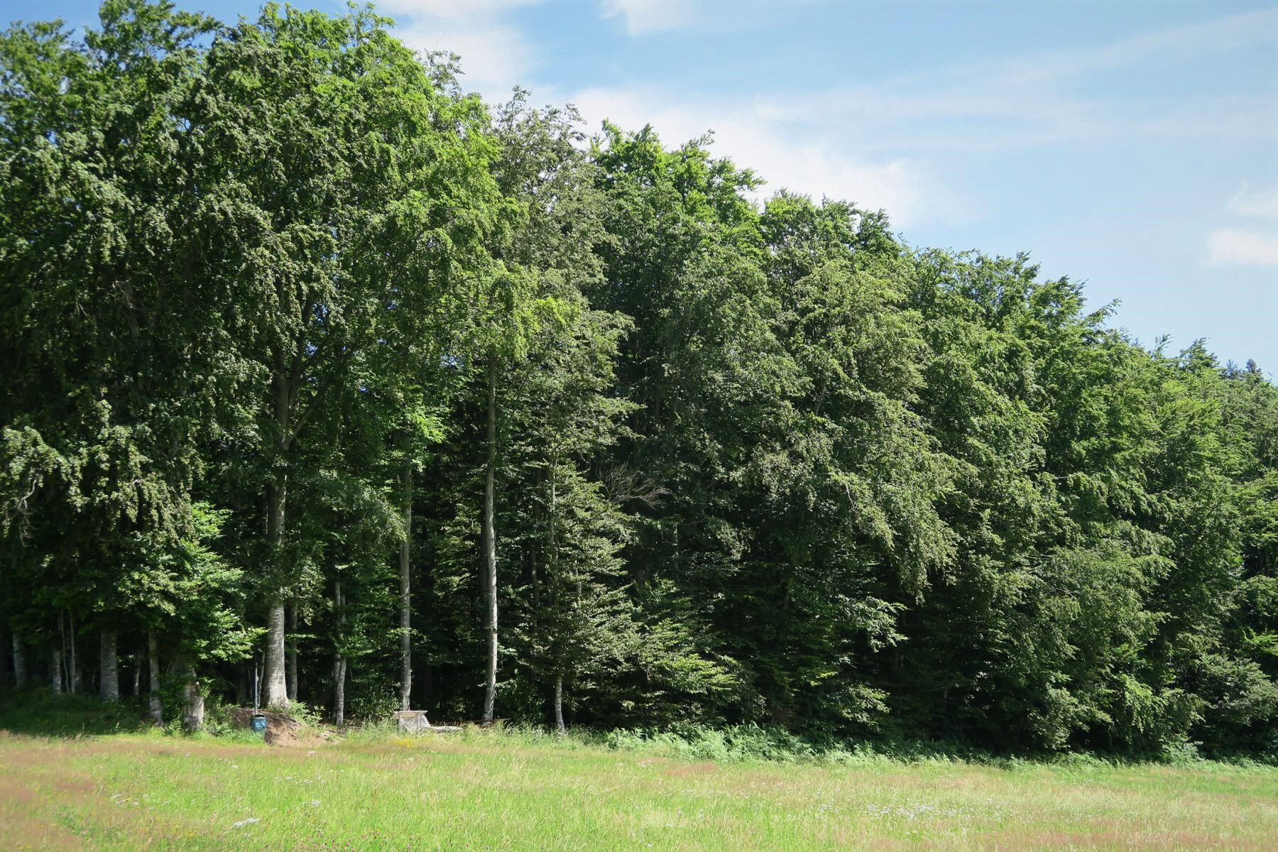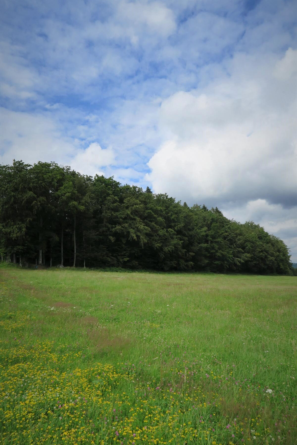 Vom Busbahnhof in der Ortsmitte von Rickenbach, 725m, orientieren wir uns nach Westen und halten uns beim Wegweiser Friedhof links. Nach einem ganz kurzen Abstieg treffen wir bald auf den Abzweig Seelmatt. Hier können wir geradeaus bleiben und direkt der gelben Raute hinauf nach Hütten folgen. Wesentlich attraktiver ist es jedoch, einen kurzzeitig strengen Aufstieg linker Hand in Kauf zu nehmen. Das Gelände verflacht jedoch rasch wieder, und wir erreichen eine Brücke über das Heidenwuhr.