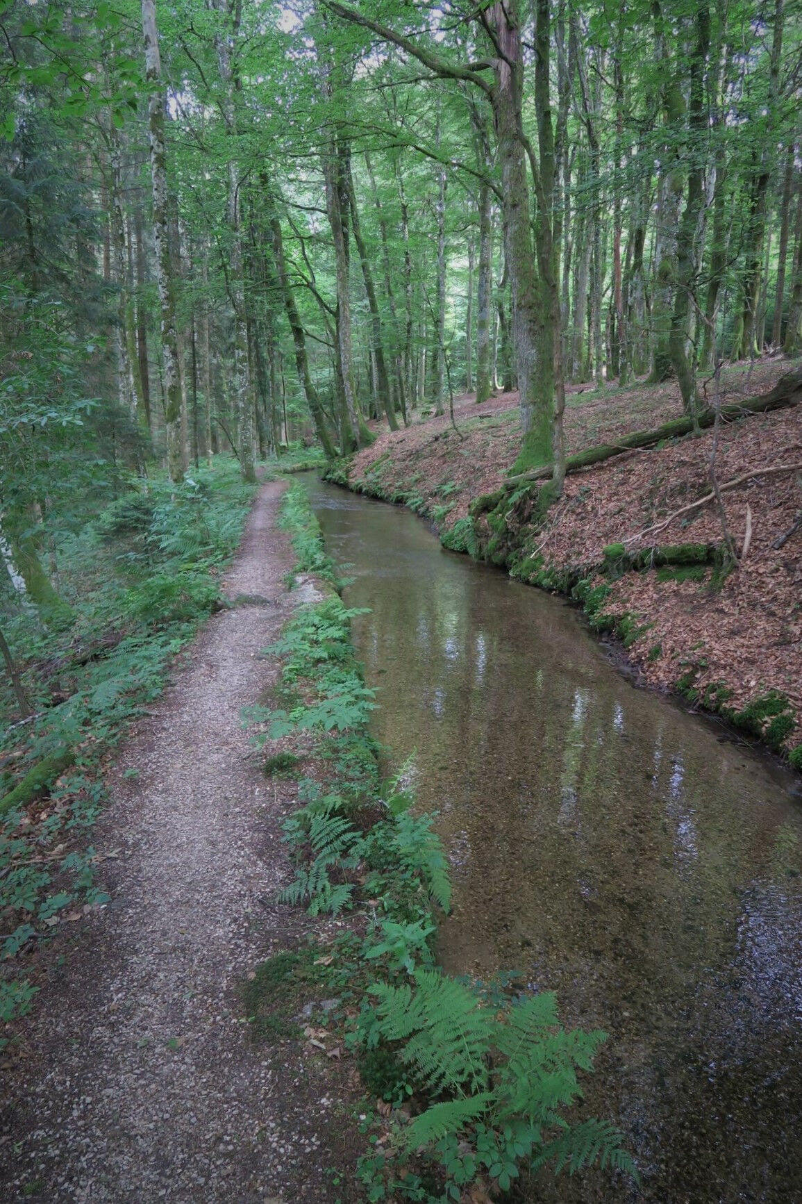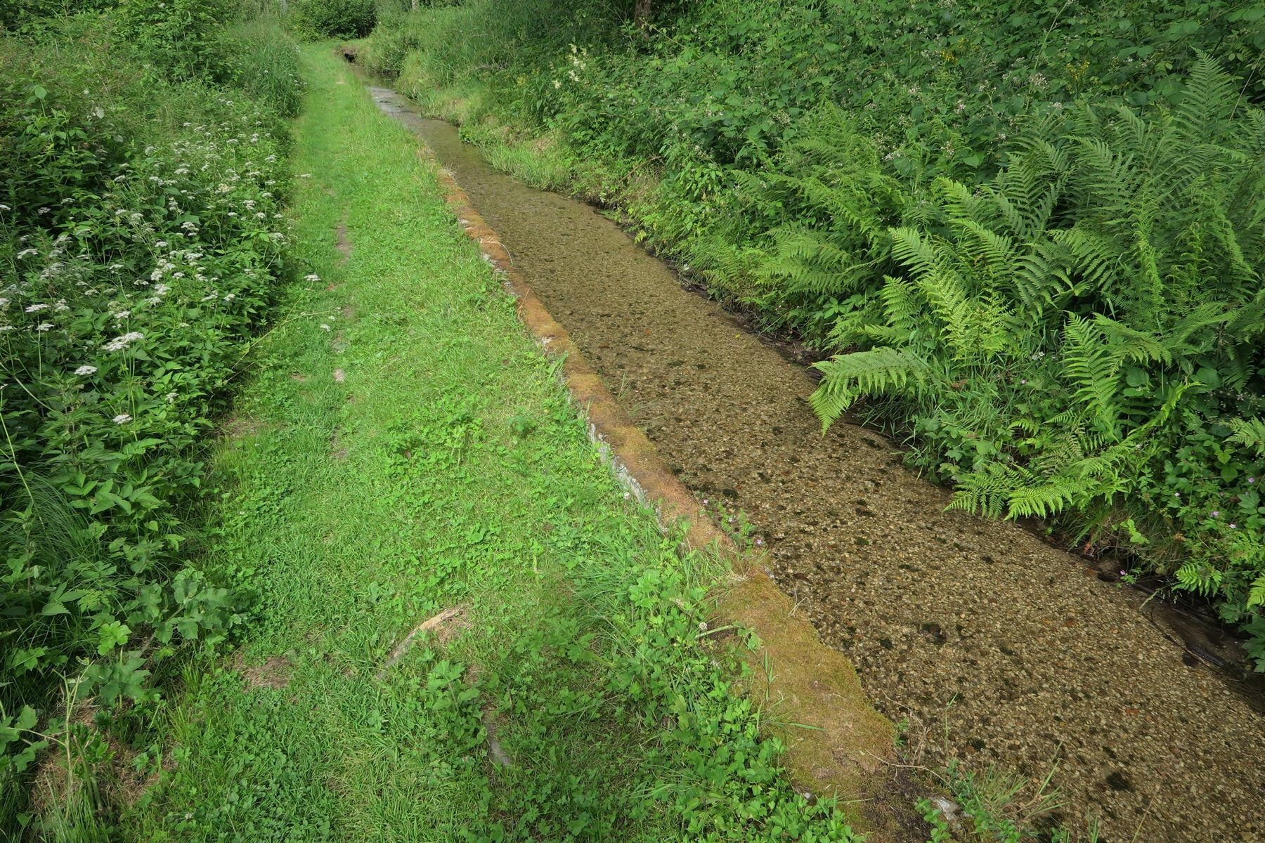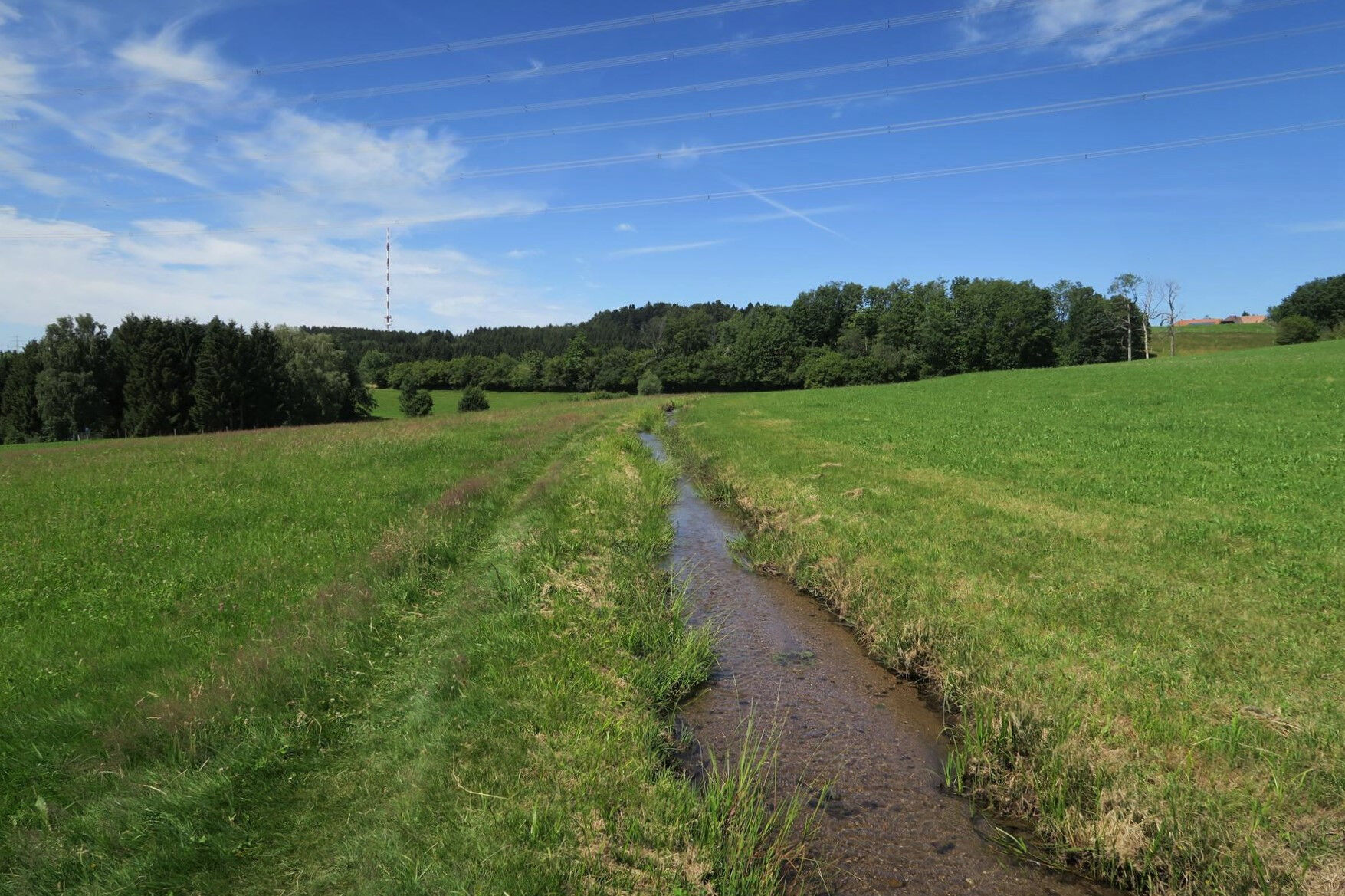 Hier verabschieden wir uns für eine Weile von der Rautenmarkierung und wandern entlang des Heidenwuhrs flussaufwärts. Spürbare Höhenunterschiede sind jedoch nicht verzeichnen. In kaum wahrnehmbarer Steigung schlendern wir an der Wuhre entlang weiter, ehe sich der Pfad nach knapp zwei Kilometern zu einer Schottertrasse weitet. Kurz darauf treffen wir den markierten Direktweg von Rickenbach und laufen gemeinsam mit diesem linker Hand hinauf zur K 6538, der wir links weiter sanft bergan folgen. In einer markanten Linkskurve der Kreisstraße bleiben wir geradeaus und wandern durch den Eggweg in die Ortsmitte von Hütten, 867m. Über den Klingenweg erreichen wir einen weiteren Wegweiser mit Namen Hütten, wo wir links aus dem Örtchen wieder hinaus wandern.