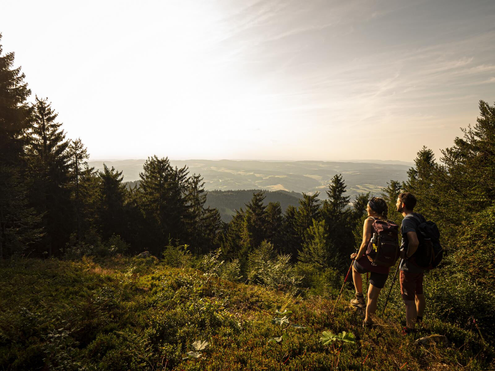 Der Rohrhardsberg steht im Mittelpunkt des dritten Tages, unscheinbar und wild zugleich. Hoch über dem Elztal, beim Hörnleberg, dem ersten Höhepunkt des Tages, beginnt die Kammwanderung zum höchsten Punkt der Etappe. Hinab geht es dann über den Bergrücken, der sich wie ein Keil nach Norden in den Lauf der Elz schiebt. An seinem äußersten Ende bei der Kapfhütte lockt eine überwältigende Aussicht.