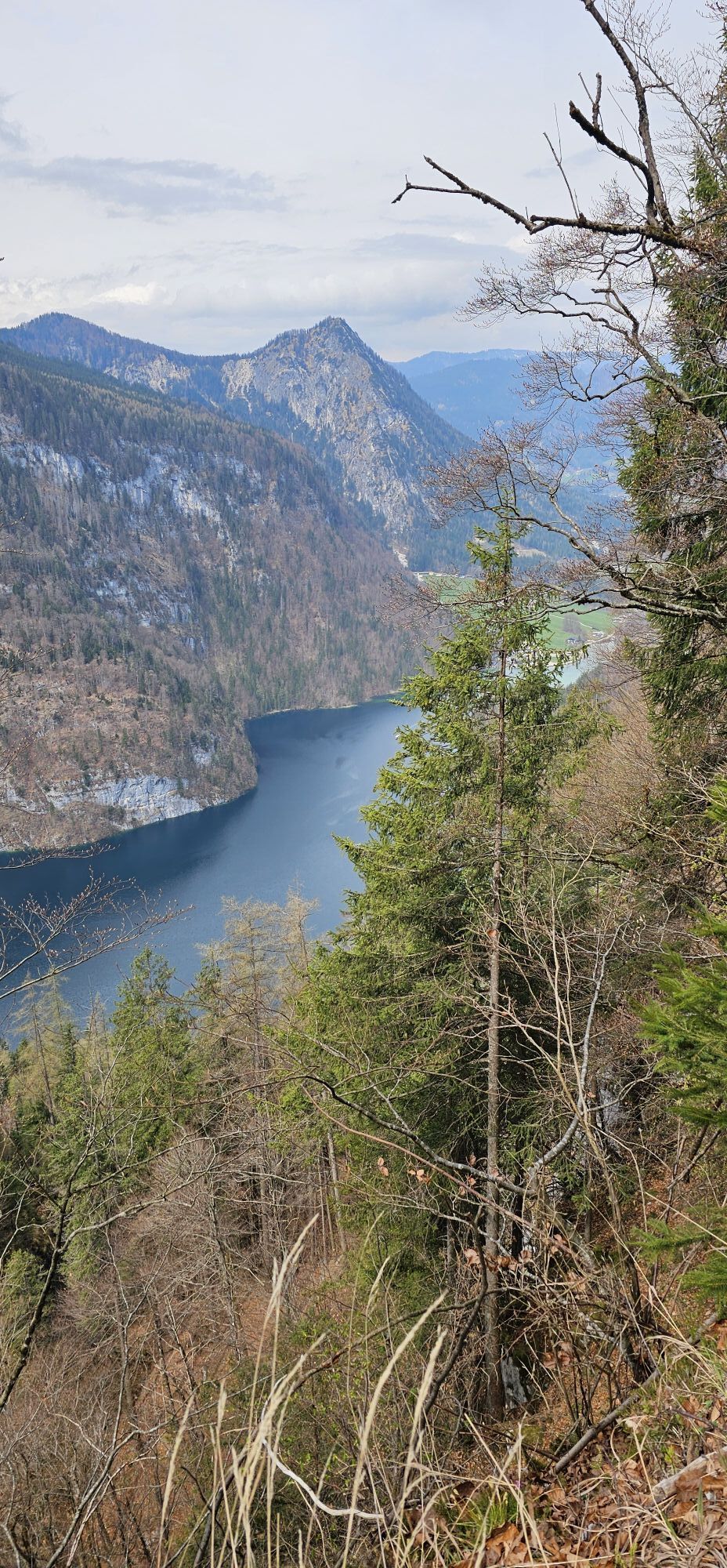 Wir lassen das Bike an der Alm stehen und machen uns auf zum Feuerpalfen. Hier öffnet sich ein atemberaubender Ausblick, der alle Anstrengung vergessen läßt: 1000m unter uns liegt türkisgrün der Königssee, gegenüber schießt die Watzmann-Ostwand senkrecht in den Himmel und davor grüßt die idyllische Kapelle von St. Bartholomä.
