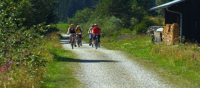 Anfang: Ortsmitte Haidmühle, an der Kirche, Marienkapelle und dem Pferdehof vorbei, geradeaus die Forststaße Richtung Kreuzbachklause, an der Dreisessel-Autostraße rechts ca. 1,4 km, dann die Staatssraße überqueren, die Streusiedlung Frauenberg anfahren, kurz nach der Jugendherberge rechts, direkt beim ehemaligen Gasthaus Waldschlößl finden Sie den ADALBERT-STIFTER-RADWEG, rechts nach Haidmühle!