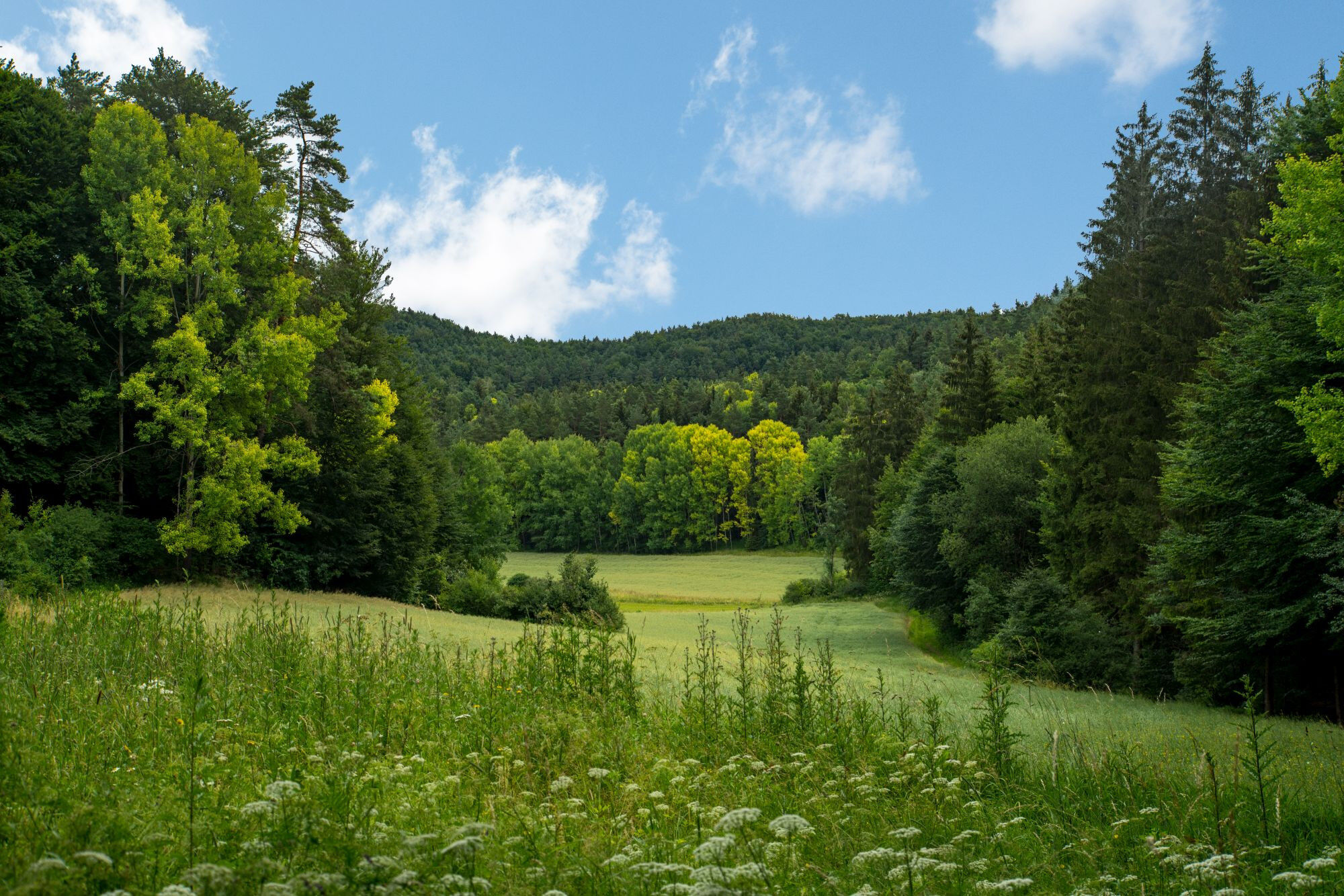 Steile An- und Abstiege, imposante Burgruinen und Passagen durch kleine felsdurchsetzte Feld- und Waldstücke wechseln mit tief eingeschnittenen Tälern. Ab Etzelwang leitet die Markierung bis zumKnappenberg...