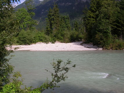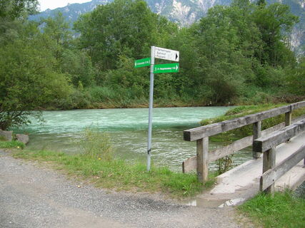 Vor der Loisachbrücke rechts auf dem Uferdammweg an der Garmischer Straße entlang, bis dieser beim Bahnübergang auf einen Feldweg einmündend, dann weiter entlang der Loisach nach Oberau, ca. 6 km.