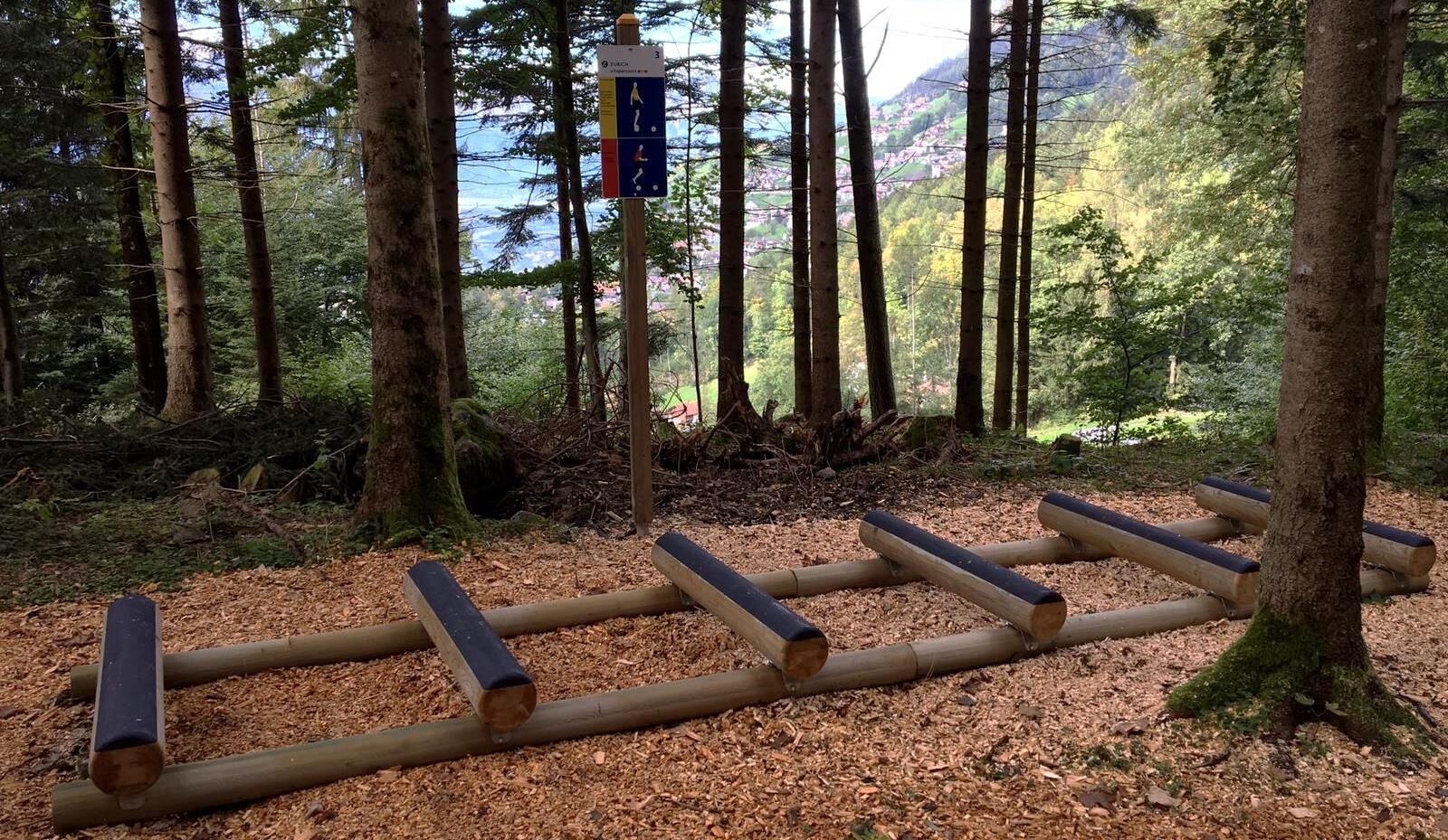 Der Vitaparcours verbindet Bewegung, Natur und Spass. Auf der abwechslungsreichen Strecke im Wald erwarten dich fünfzehn Stationen mit Übungen für Beweglichkeit (gelb), Kraft (rot) und Ausdauer (blau). Jeder Parcours ist vermessen und informiert über Strecke, Kalorienverbrauch und Fitnesslevel. Das Beste: Trainiert wird draussen – kostenlos und jederzeit.