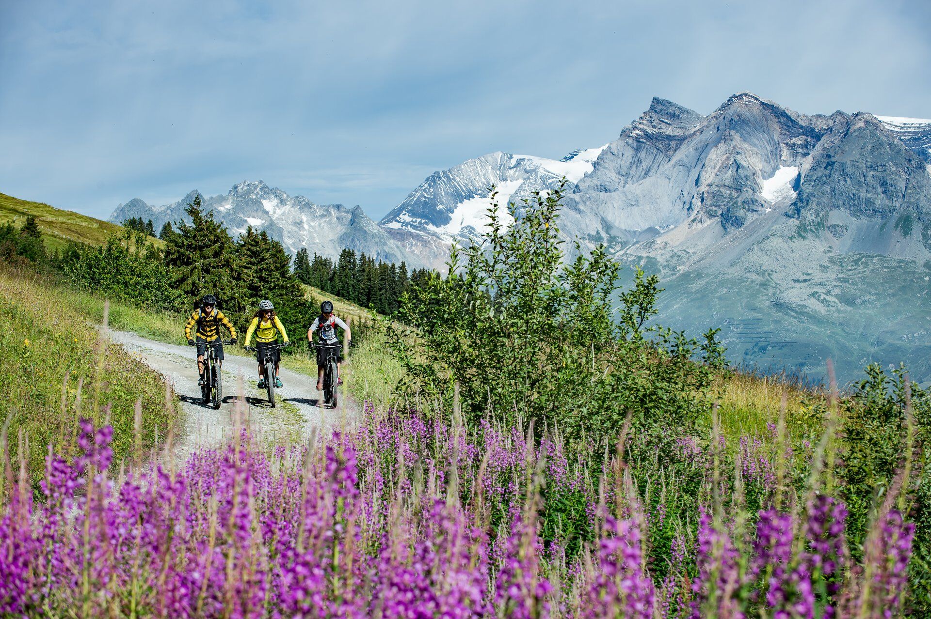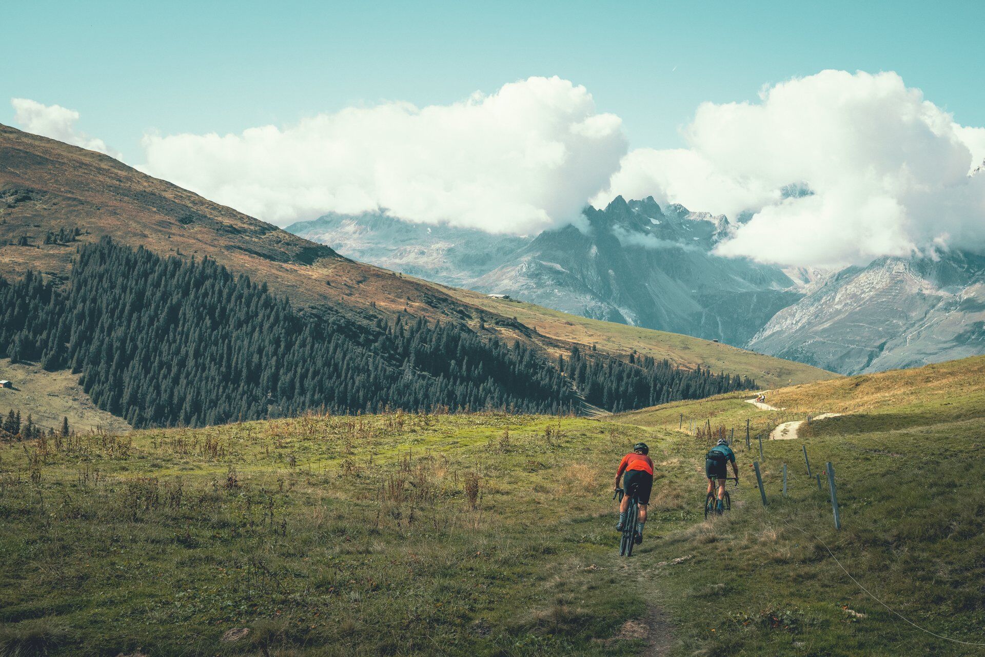 Unmittelbar nach dem Start im Dorf Lumbrein werden die Kalorien vom Frühstück wieder verbrannt. Es geht nämlich bis zur Alp Nova 670 Höhenmeter stetig aufwärts. Ein kurzes Stück führt die Route sogar über einen Uphill-Trail. Die prächtige Bergwelt auf dem Passübergang entschädigt die vielen Schweisstropfen jedoch locker. Nun geht es über flüssig zu fahrende Singletrails und Alpstrassen runter bis nach St. Martin in Obersaxen. Wer sich verpflegen will, legt auf halber Strecke im Maiensäss-Restaurant Waschchrüt einen kulinarischen Zwischenstopp ein.