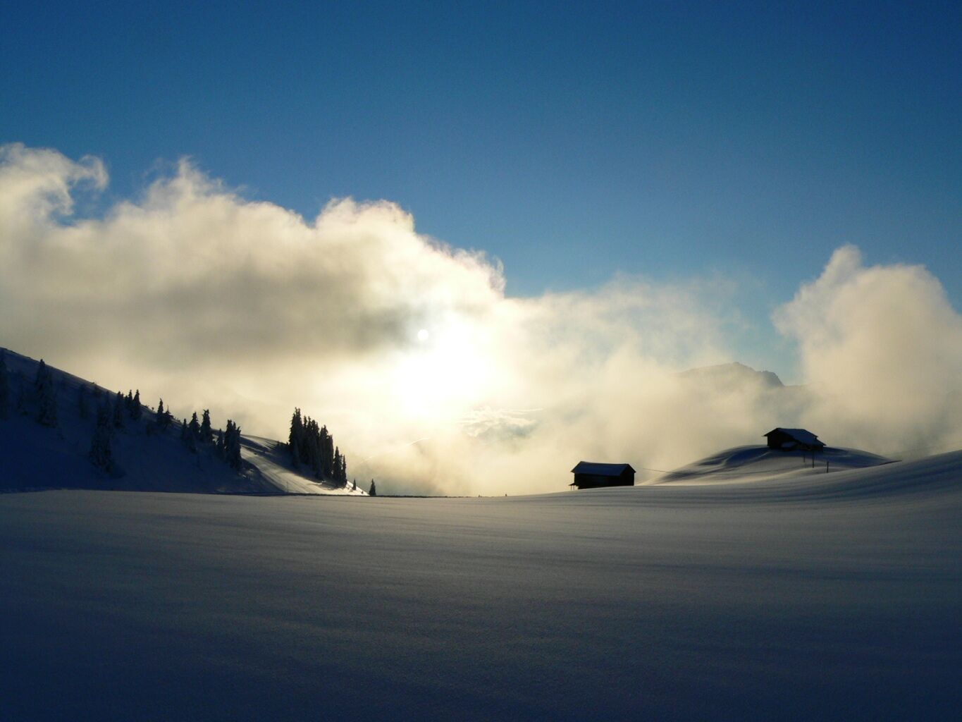 Das Hochplateau zwischen Danusa und Scära mit seiner weitläufigen, hüglichen Landschaft und einem herlichen Panoramablick eignet sich sehr gut für Schneeschuhwanderunge.