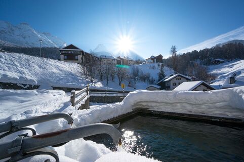 Die Tour beginnt im malerischen Weiler Tarasp, Fontana. Der Weiler liegt direkt unterhalb des Schlosses und direkt am Lai da Tarasp auf welchem es einen «Mond», ein Kunstobjekt des Schlossherren und Künstler...