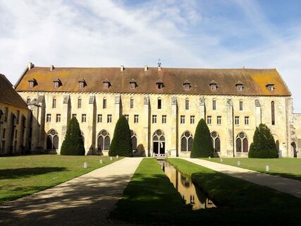 Edifiée en 1228 par le roi Saint Louis, elle appartient aujourd'hui à la Fondation Royaumont. Depuis le parc aux allées arborées, on remarque immédiatement un curieux bâtiment divisé en deux par un canal, les latrines. Puis on pénètre par le passage-parloir dans le superbe cloître gothique qui s'ouvre sur le réfectoire des moines et les cuisines au sud, et la sacristie à l'est, accolée à l'église dont il reste des ruines spectaculaires.