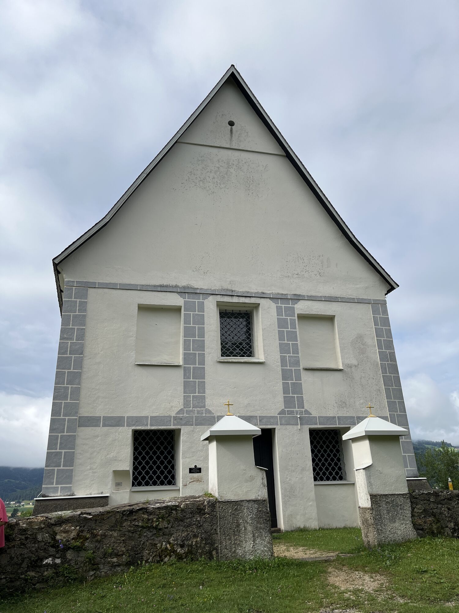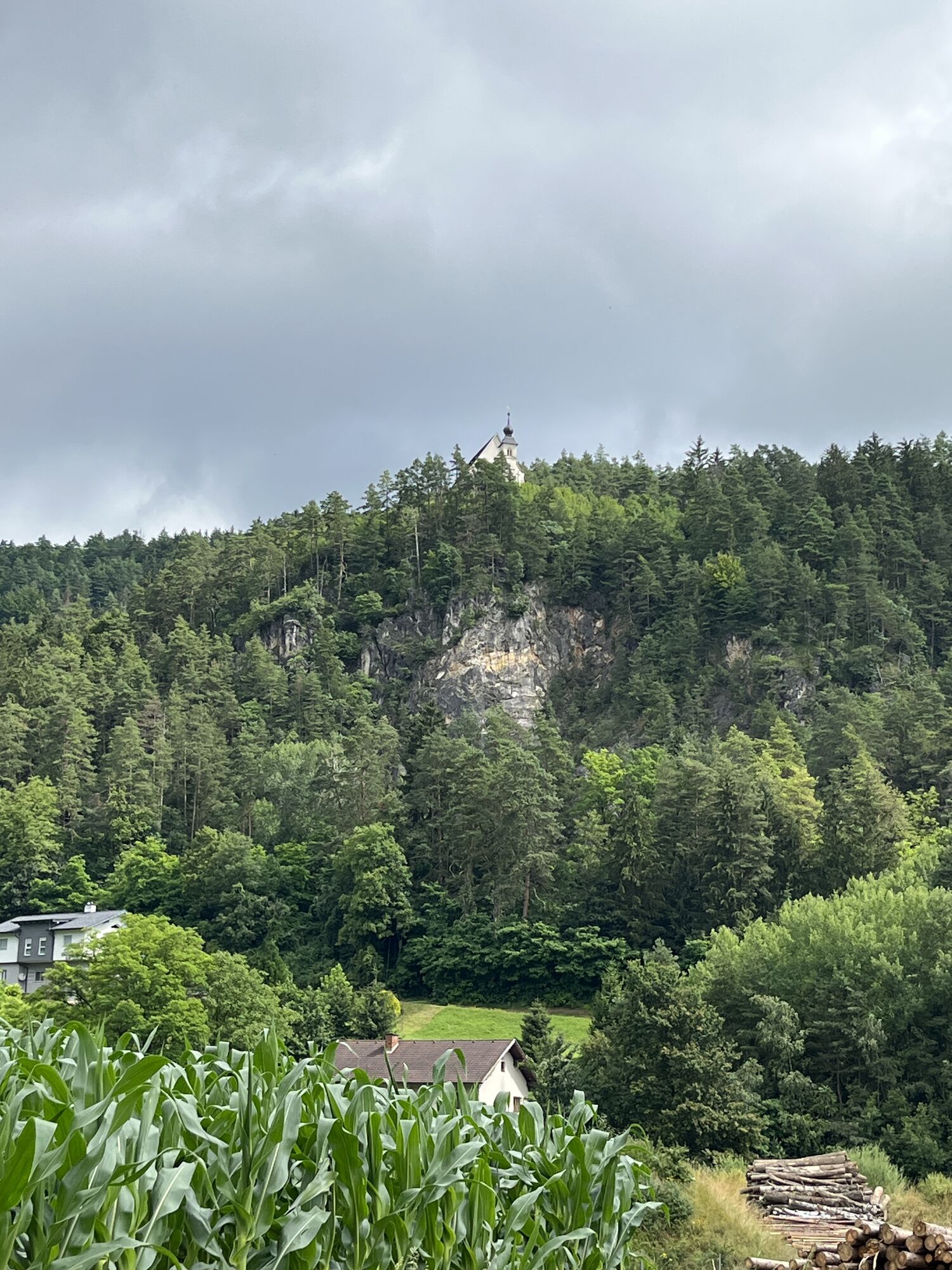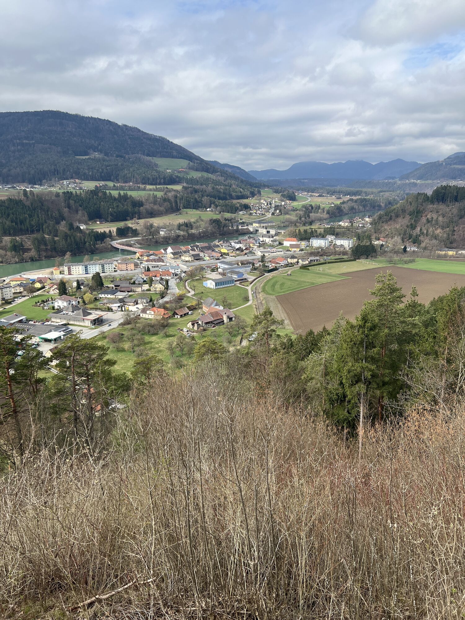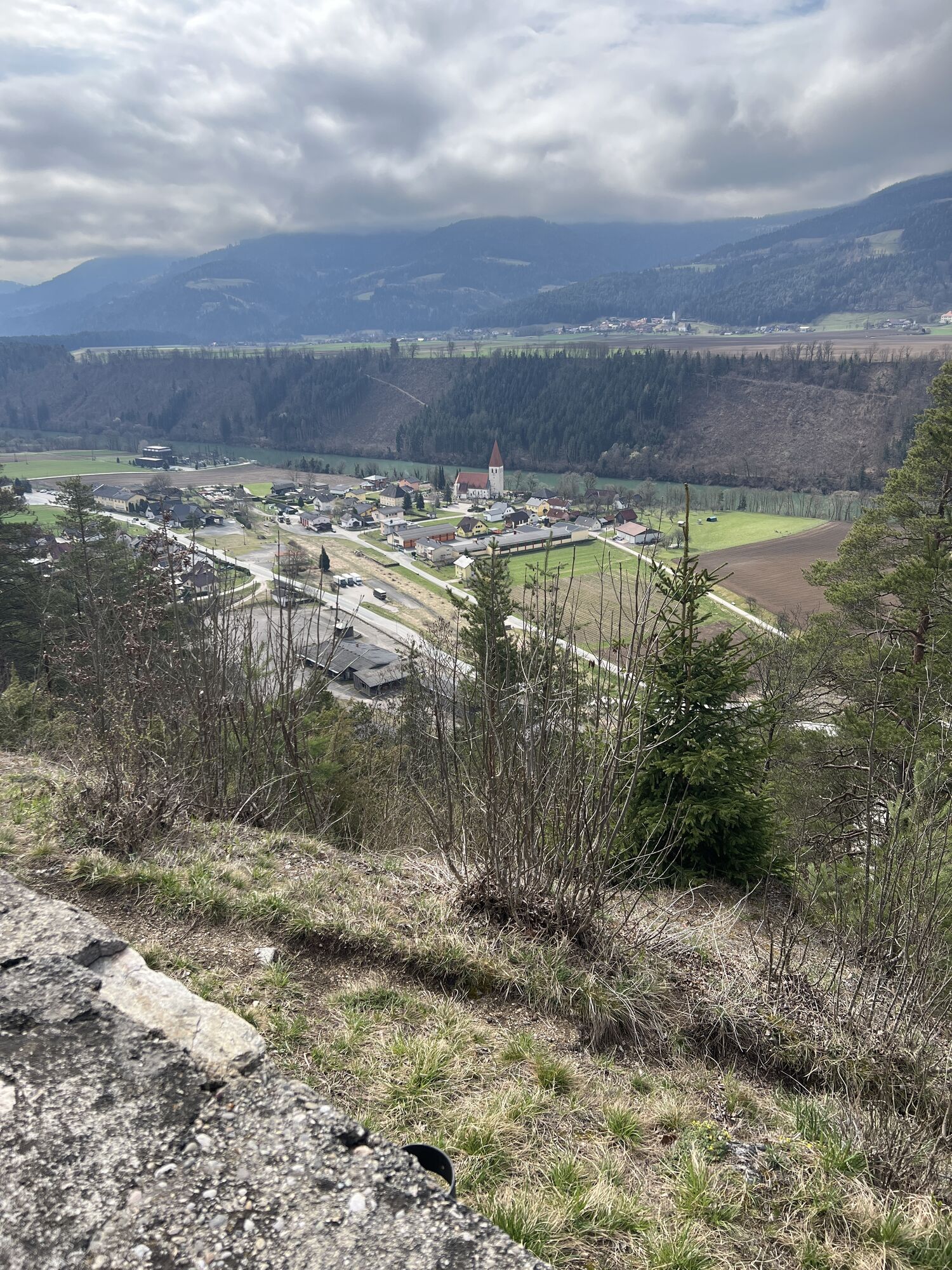 Oben angelangt genießt man den Ausblick über Lavamünd und die Kirche. Runter gehts unverfehlbar über den Kreuzweg mit Stationen bis einem die Straße auffängt, dann links zurück zum Parkplatz.