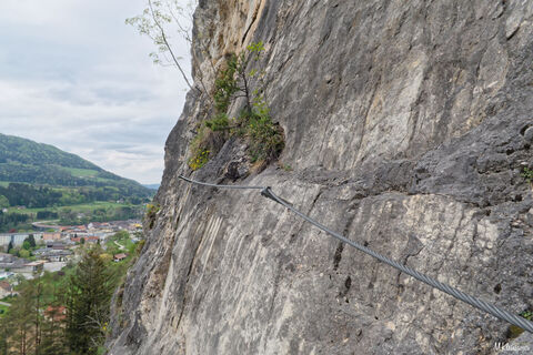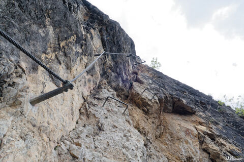 Nach dem Finden des Parkplatzes gehts gut markiert rauf zum Einstieg des Klettersteiges (10min). Der Einstieg ist ganz links versteckt im Gestrüpp auf einem kleinen Felspfeiler. Schön geführt, gesichert...
