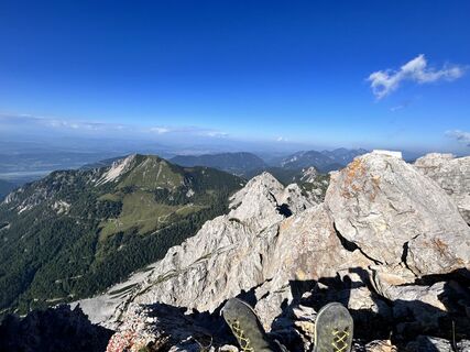 Sehr der Sonne ausgesetzt, langer Klettersteig, Schönes Panorama mit Blick auf die Julischen Alpen, beim Abstieg ist empfehlenswert das Schuttkar geradewegs runter zu laufen/rutschen für eine groß zeitersparnis