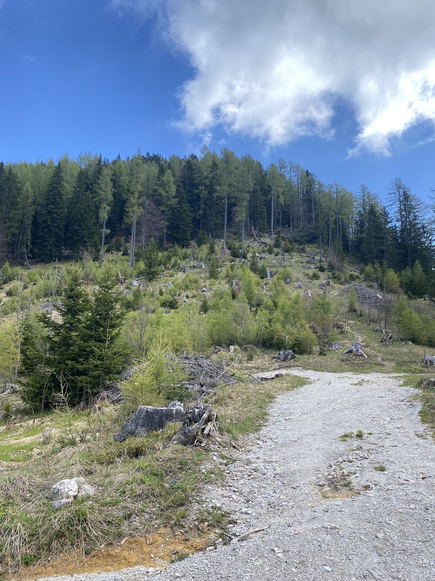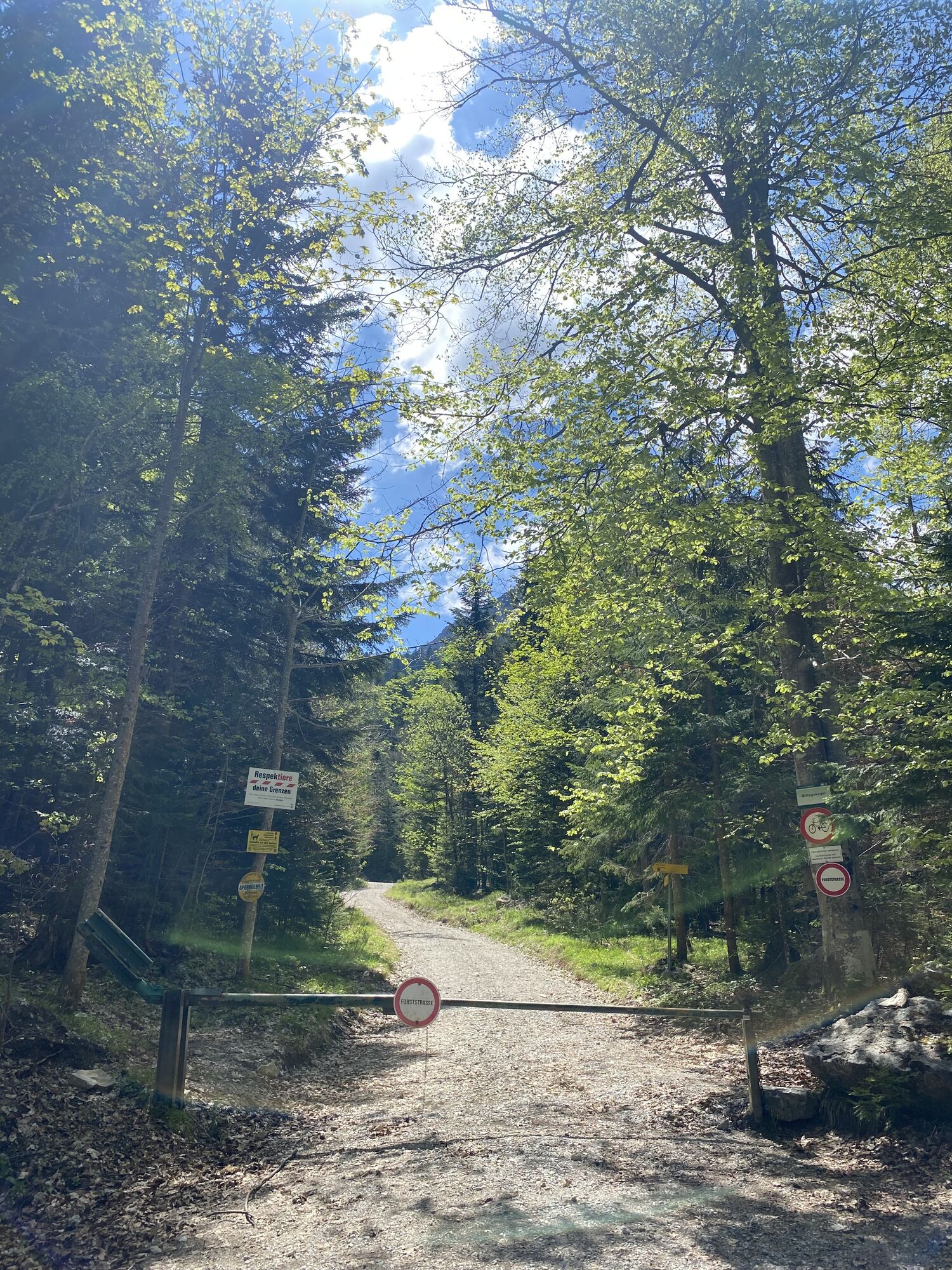 Parkplatz beim Forstweg, siehe Foto mit Schranke