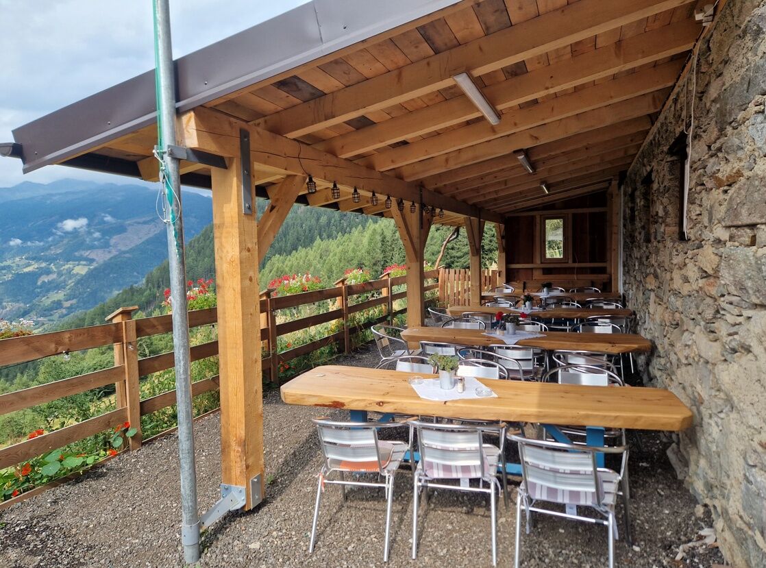 Von der Terrasse aus hat man einen tollen Panoramablick auf die Kreuzeck- und die Goldbergruppe.