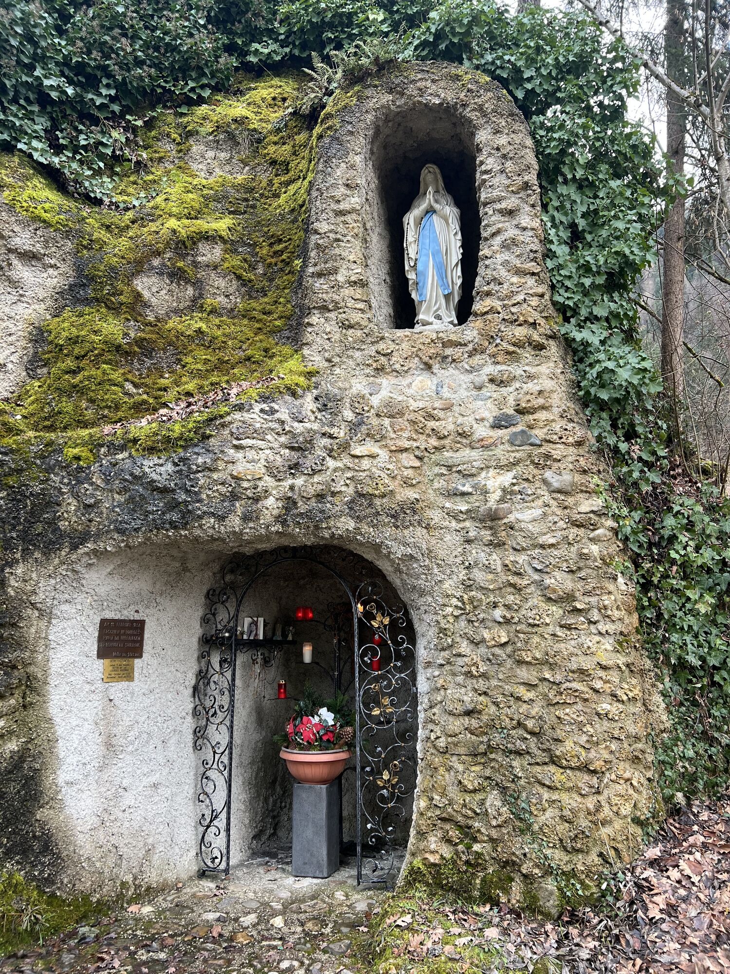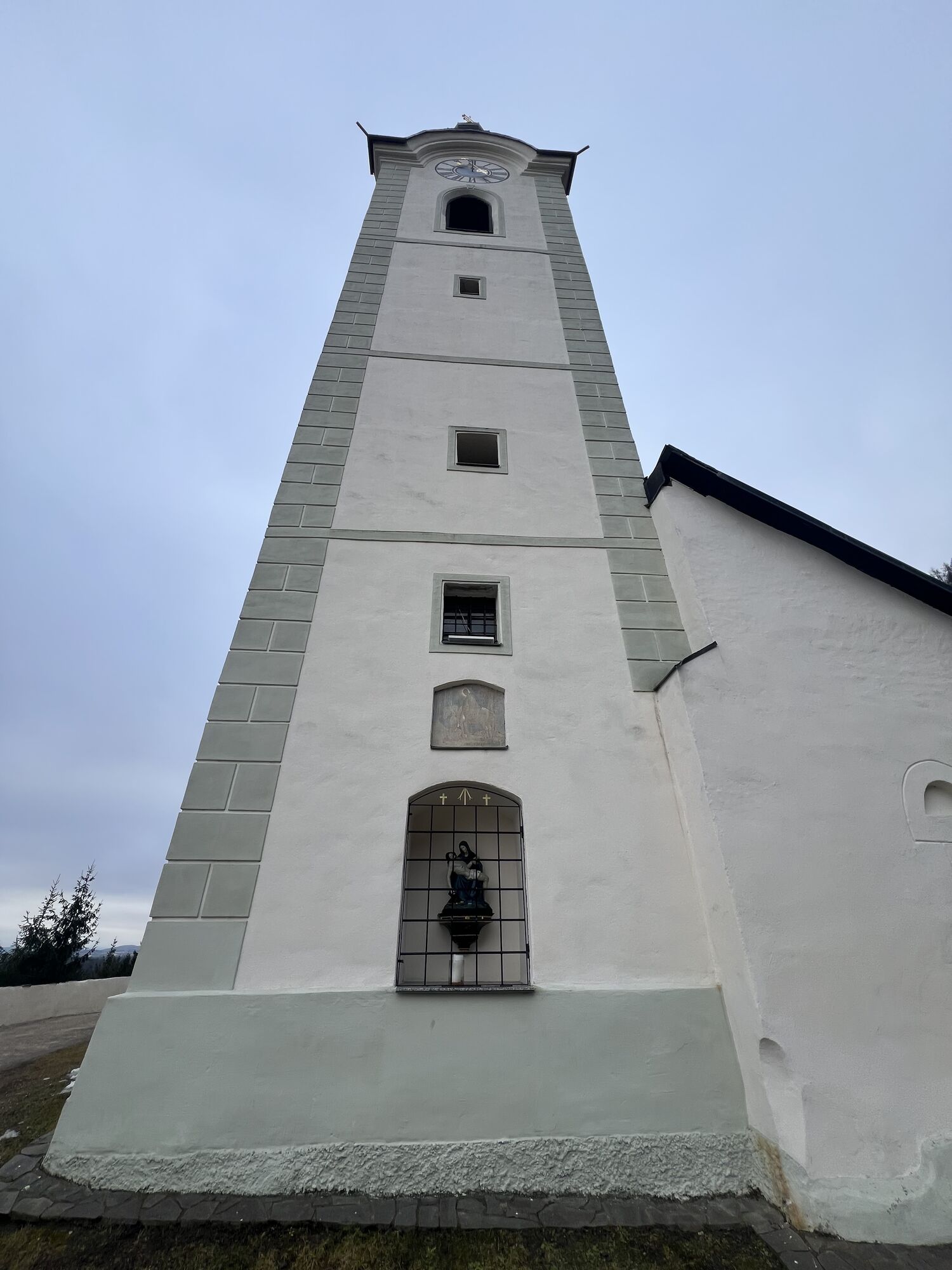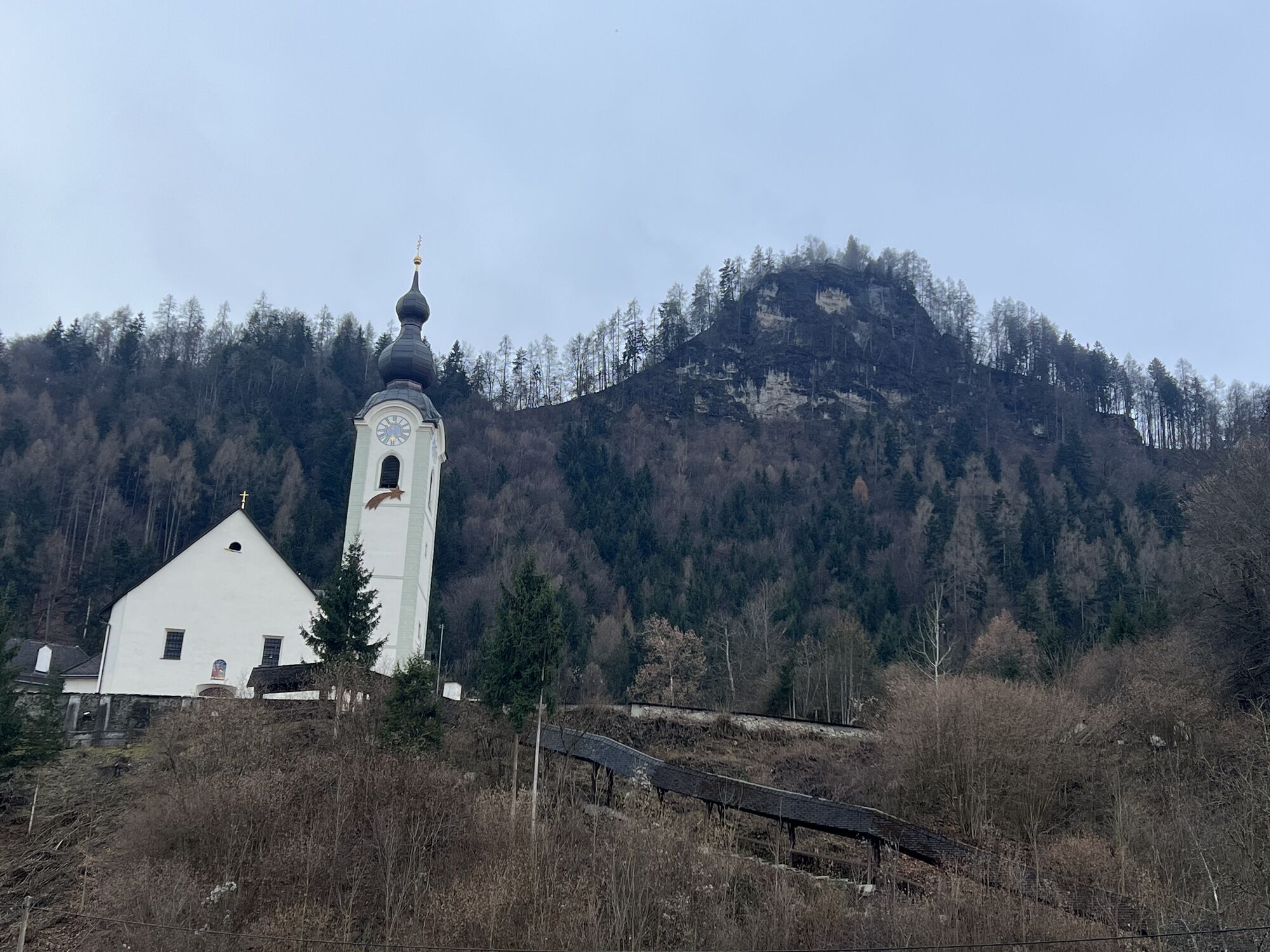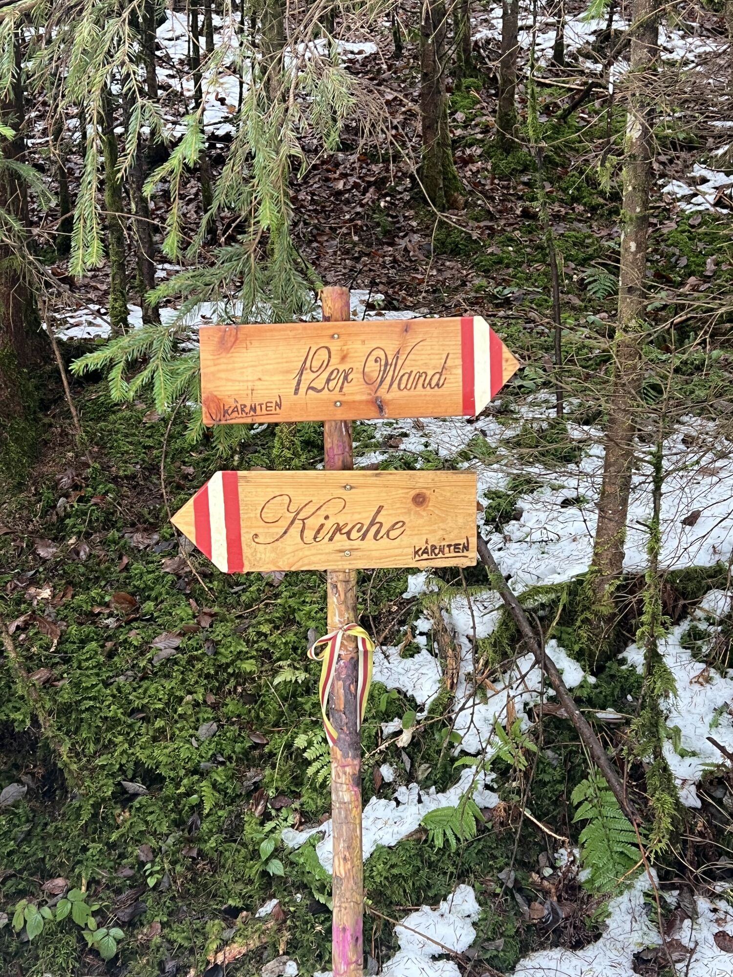 Kurzer Anstieg über die Straße oder einer der beiden Treppen zur Kirche Gurnitz. Hinter der Kirche befindet sich der Einstieg zum Pfad. Teils recht steil bis zur Forststraße. Dem Forstweg entlang, bis hinter die Zwölferwand. Dort scharf rechts nochmals kurz etwas steiler hinauf.