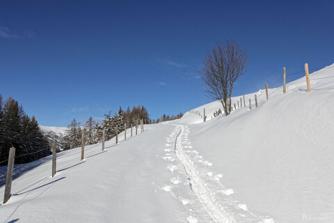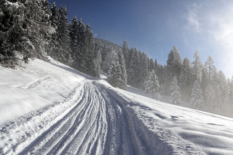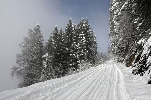 Es kann teilweise sehr viel Schnee auf der Straße liegen.