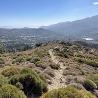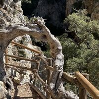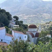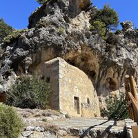 Man lässt den Abzweig zum Abstieg rechts liegen und geht weiter bergauf Richtung der kleinen Kirche. Man kommt an einem Felsüberhang vorbei, der als Ziegenstall genutzt wird.