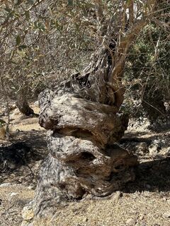 Der Weg führt erst mal aufwärts durch einen mit uralten Olivenbäumen bestandenen Garten. Er ist rot gelb markiert.
