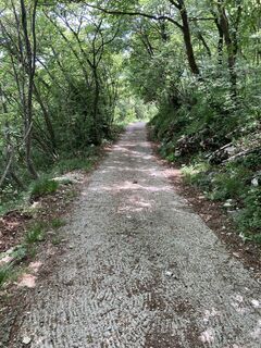 Der Weg ist zunächst noch moderat steil, später geteert und ziemlich steil mit zwischenzeitlich ebenen Abschnitten.