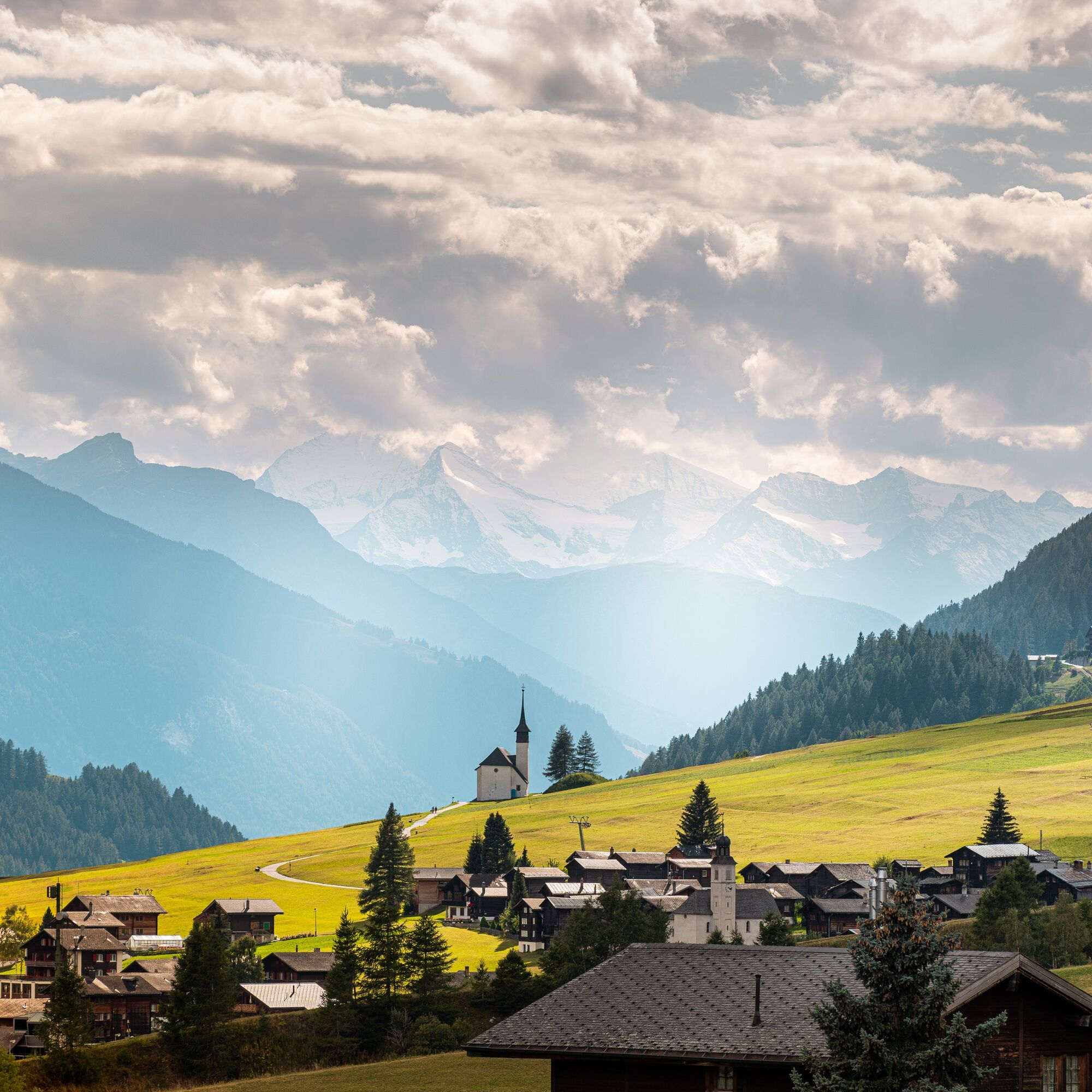 Von Andermatt aus folgen Sie der Reuss entlang des hiesigen Golfplatzes und legen in Hospental, einem der schönsten Schweizer Dörfer, einen ersten Halt ein. Anschliessend wartet Zumdorf, das kleinste Dorf des Landes. Setzen Sie Ihren Weg danach in Richtung Realp und der Ostrampe des Furkapasses fort, entlang der Ebene von Urseren. Auf dem stetigen und anspruchsvollen Anstieg zum Pass bewältigen Sie 900 Höhenmeter auf 12 Kilometern. Auf dem Gipfel überqueren Sie die Kantonsgrenze, bevor Sie sich an die ersten Kurven der Abfahrt wagen. Auf 2200 Metern Höhe erreichen Sie den Rhonegletscher sowie den gleichnamigen Fluss, dem Sie viele Kilometer folgen werden. Sie passieren das Hotel Belvédère und setzen Ihre Abfahrt über die Serpentinen fort, bevor Sie in Richtung Gletsch und weiter ins Goms fahren. Vor Ihnen lösen Wälder die alpine Landschaft allmählich ab, die schliesslich in die malerische Weite des Obergoms sowie das Plateau von Ulrichen, dem Zielort dieser Etappe, überfliesst.