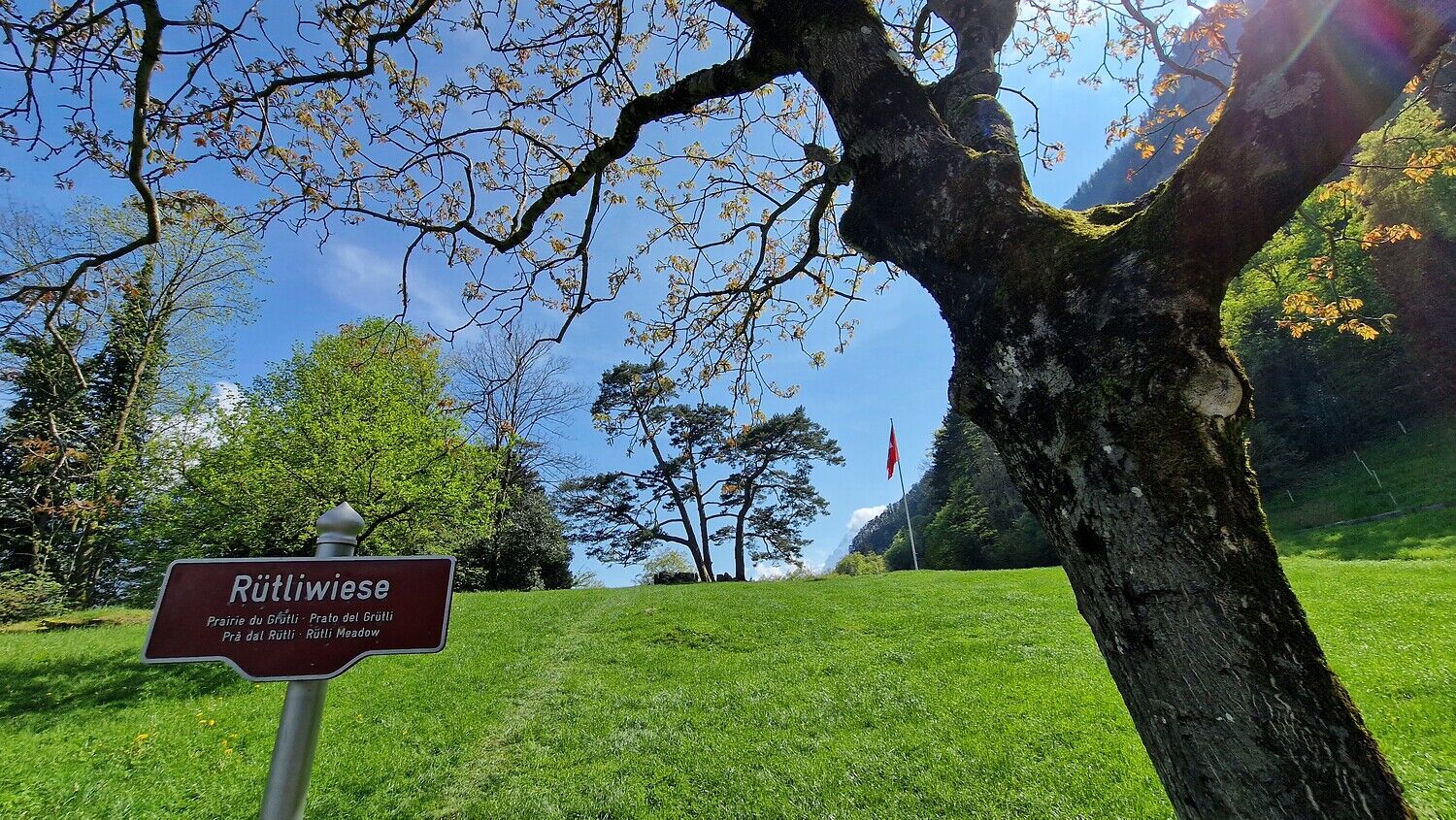 Wer noch etwas weiterfährt, erreicht den oberen Stall und die Rütliwiese – ein besonders stimmungsvoller Ort, um den Geist des Rütli in Ruhe auf sich wirken zu lassen.