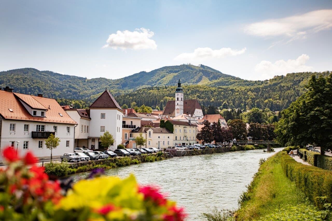 Ausgangspunkt ist der Rathausplatz. Wir gehen die Rathausstiege hinab, überqueren die Hauptstraße und gleich danach auf dem „Sandsteg“ die Erlauf. Weiter geradeaus durch die Bahngasse zum Bahnhof. Hier biegen