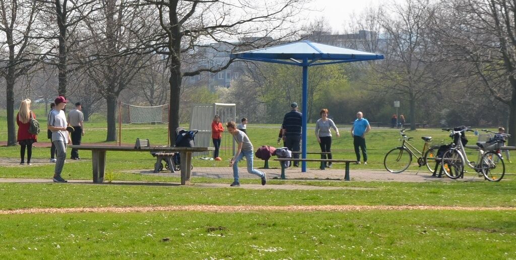 Auf dem Großparkplatz ist das Parken kostenfrei.