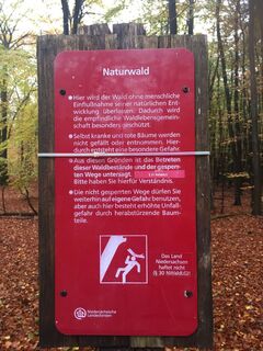 Entlang des Naturlehrpfades haben wir leider keine Bänke, Rastplätze oder ähnliches entdeckt, was wohl zum Konzept des Naturwaldes gehört.