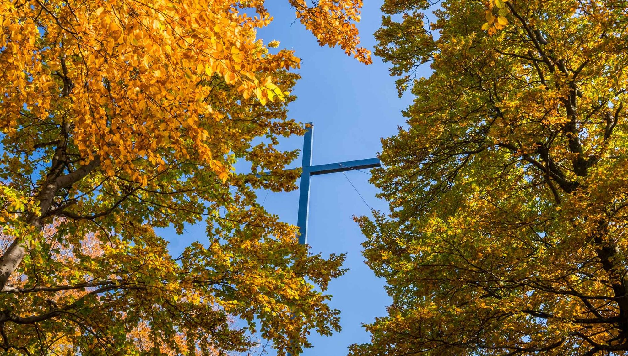An der nächsten Wegegabelung gehen wir rechts und folgen weiter der Markierung W1 Richtung Grafschaft. An der Stellmecke, eine große Wegekreuzung mit Sternwegweiser biegen wir rechts ab und folgen der Markierung A2 bis zum Wanderparkplatz „Wilzenberg“. Ab hier folgen wir der Markierung A4 bergauf, vorbei am „Wegweiser Blutschwitzender Heiland“ und weiter bis zum Parkplatz „Oberer Wilzenberg“. Bevor hier der Asphaltweg geradeaus vor uns endet, biegen wir scharf links ab und gehen am „Wegweiser Oberer Wilzenbergparkplatz“ weiter bergauf, der Markierung A4 folgend bis zur Kapelle am Wilzenberg und dem Wilzenbergturm.