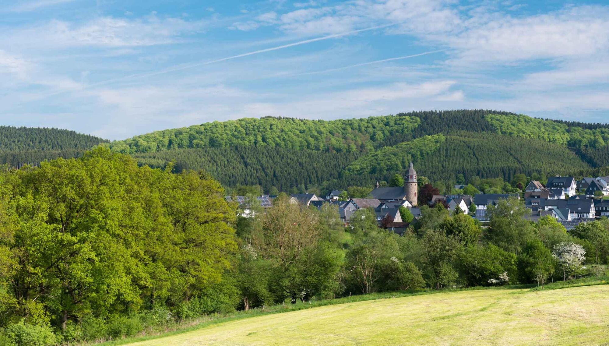 An der Schutzhütte biegen wir nach links ab und folgen N1 bis nach Niedersorpe. Hier folgen wir dem Wanderzeichen X13 durch Niedersorpe bis zum Sportplatz Holthausen. Wir gehen weiter mit der X13 bergauf, biegen um die Scheune und gehen die kurze Steigung (100 m) bis zum „Wegweiser 536 m“. Von hier aus gehen wir weiter nach links mit der X13. Nach der rechts am Weg gelegenen Scheune oberhalb von Holthausen gehen wir an der zweiten Abzweigung links und begeben uns hinunter ins Dorf zu unserem Ausgangspunkt.