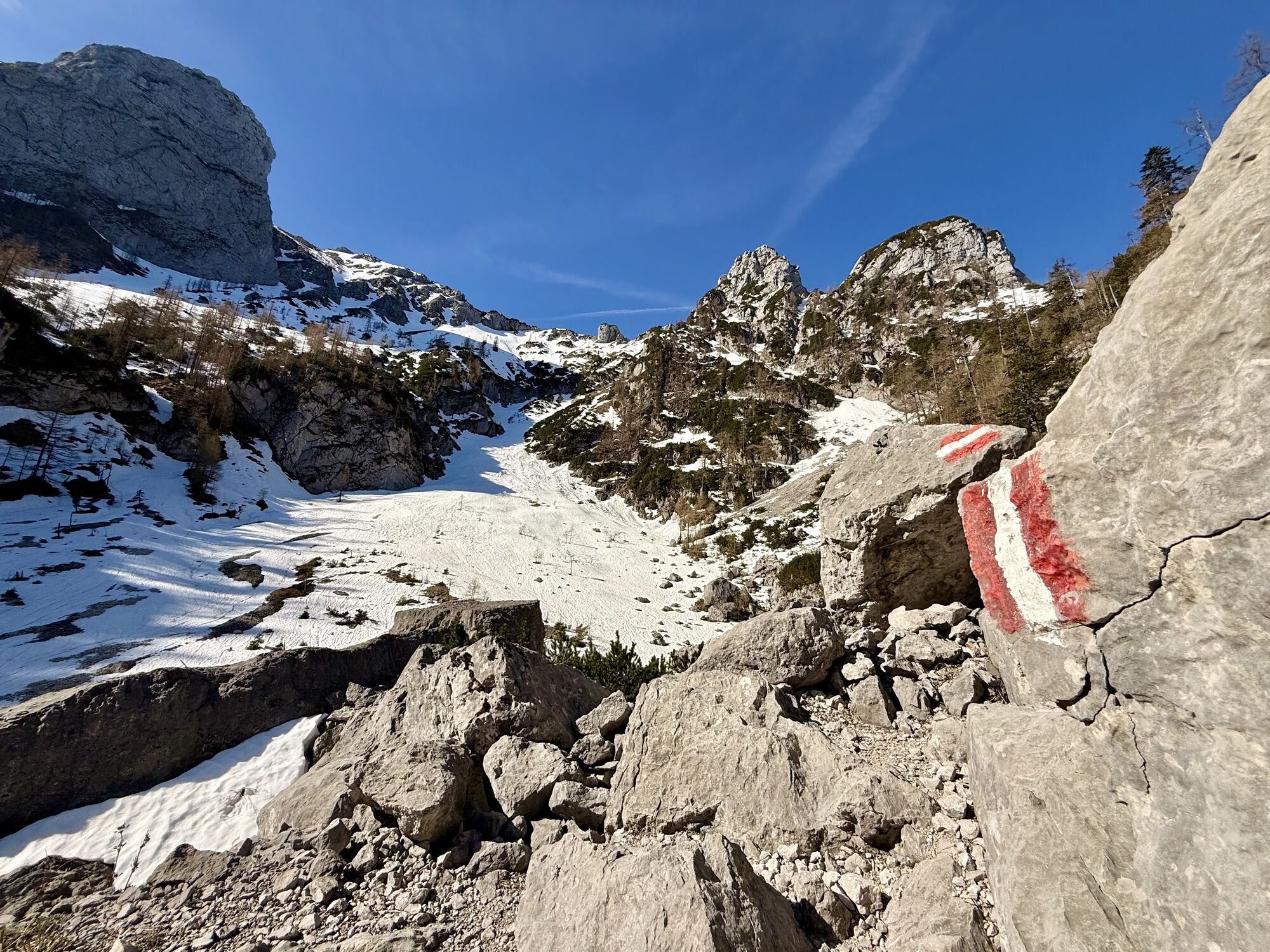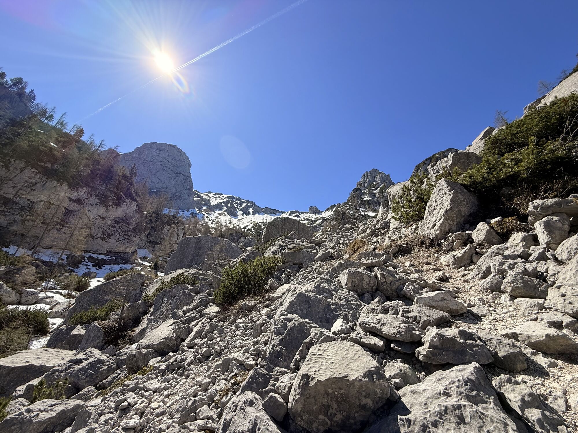 Fast schneefrei - ein paar Schneefelder gibt’s noch im oberen Teil … Grödel habe ich aber nicht gebraucht.
