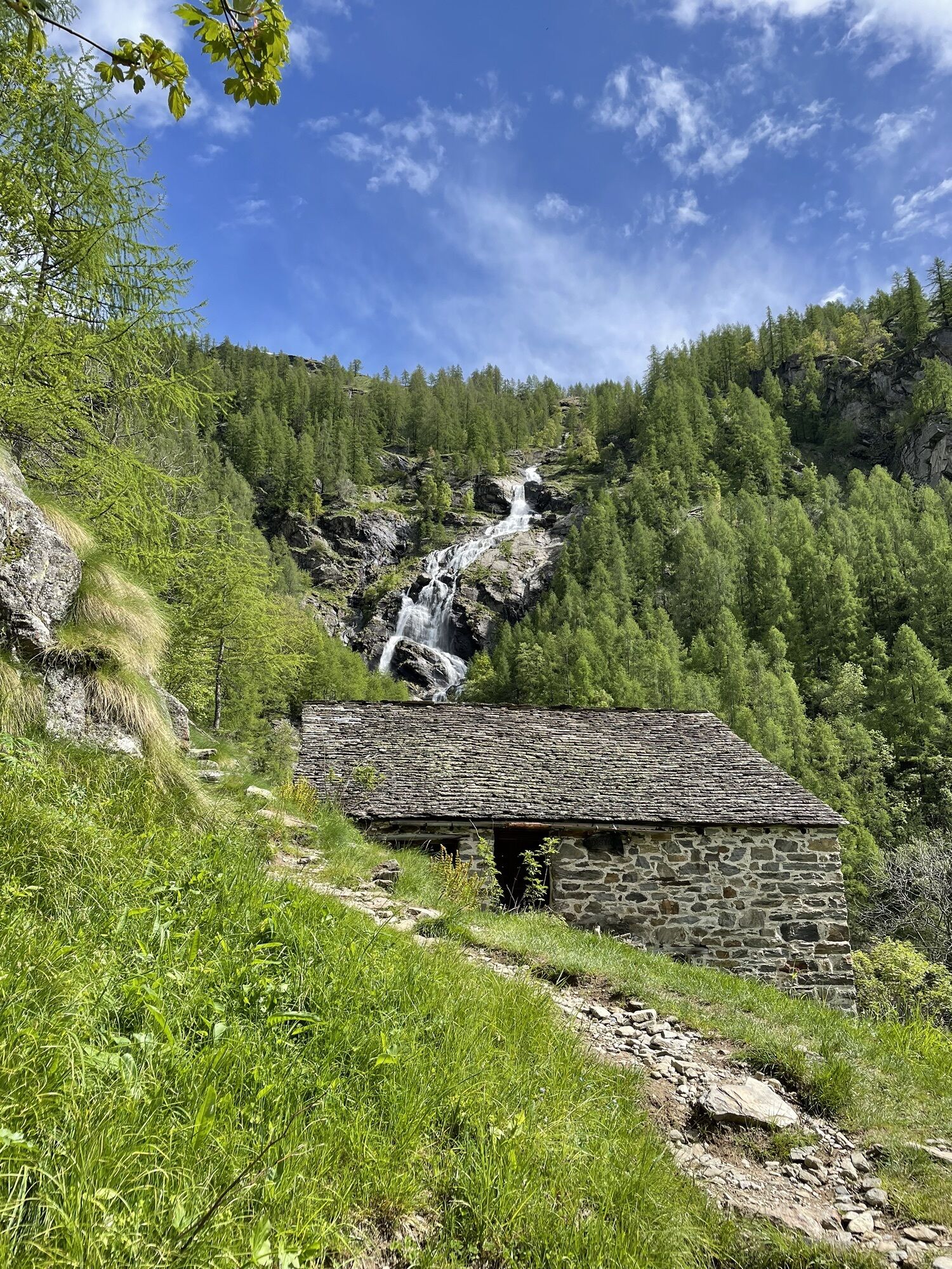 Vom Rifugio Pastore aus überqueren Sie erneut die Sesia und kehren auf dem Saumpfad zum linken Ufer zurück, der schnell zum Wildwasser-Wasserfall „Zam wisse boch“ (1495 m) und nach einigen Kurven zum darunter...