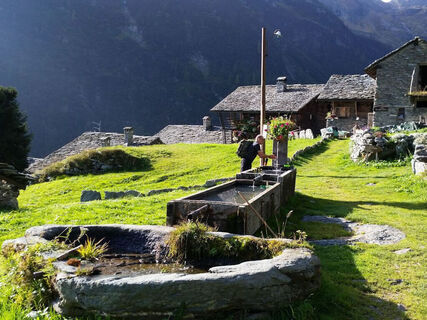 Man steigt rechts hinauf, passiert eine Kapelle und erreicht mit zahlreichen Serpentinen die prächtige Conca di Otro, gegenüber der schönen Kapelle von Follu, 1664 m (Gesamtdauer ca. 1h30).