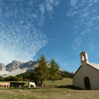 Au départ de St-Étienne n Dévoluy, le tour du Dévoluy bascule vers l’incontournable site classé du vallon de la Jarjatte, composé d’impressionnantes falaises et aiguilles. Alpages, cols et chourums (cavités naturelles) se succéderont ensuite juste sous l’imposant sommet du Grand Ferrand (2758 m). Le GRP® se poursuit à travers divers hameaux comme St-Disdier, les Hauts-Gicons ou bien encore St-Etienne-en-Dévoluy. Un passage au fameux Col de Rabou, loin de toute habitation, permet ensuite de contourner le très majestueux Pic de Bure, d’une minéralité incroyable. Le sentier se poursuit enfin à travers la fascinante forêt domaniale des Sauvas.