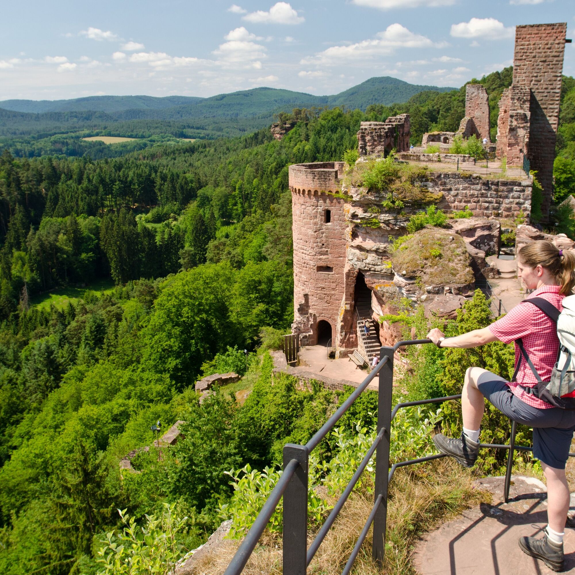 Die siebte Etappe stellt sich mit einer Reihe von trutzigen Persönlichkeiten vor. Auf der Tour von Dahn nach Erlenbach nehmen Sie spektakuläre Felsen und auf roten Felsmassiven gebaute Burgruinen ins Visier....