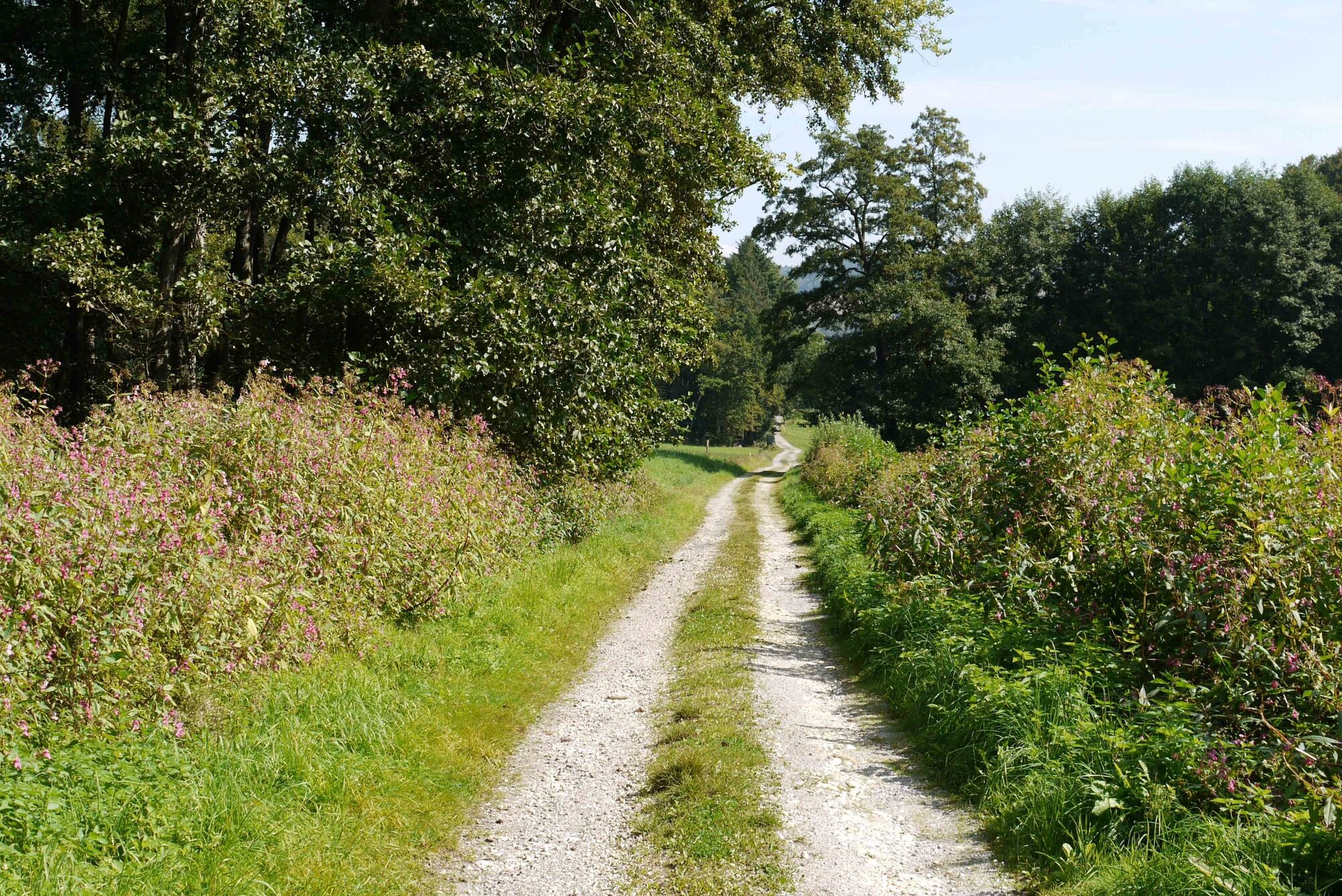 Durch eine kurze Birkenallee gelangen Sie ins offene Haselbachtal – je nach Wasserstand begleitet vom Plätschern des Bächleins. Mit dem Beginn des Waldes am Wanderweg erreichen Sie den schönsten Talabschnitt, der sich hier mit den Wiesen als eine fast schon malerische Parklandschaft präsentiert – besonders fotogen, wenn Sie später von oben zurückschauen. Doch zunächst führt der Weg durch einen kurzen Abschnitt, an dem im Sommer eine üppige Blütenpracht in vielen Rosatönen auffällt. Das Indische Springkraut hat neben dem attraktiven Aussehen aber auch noch eine weniger positive Seite.