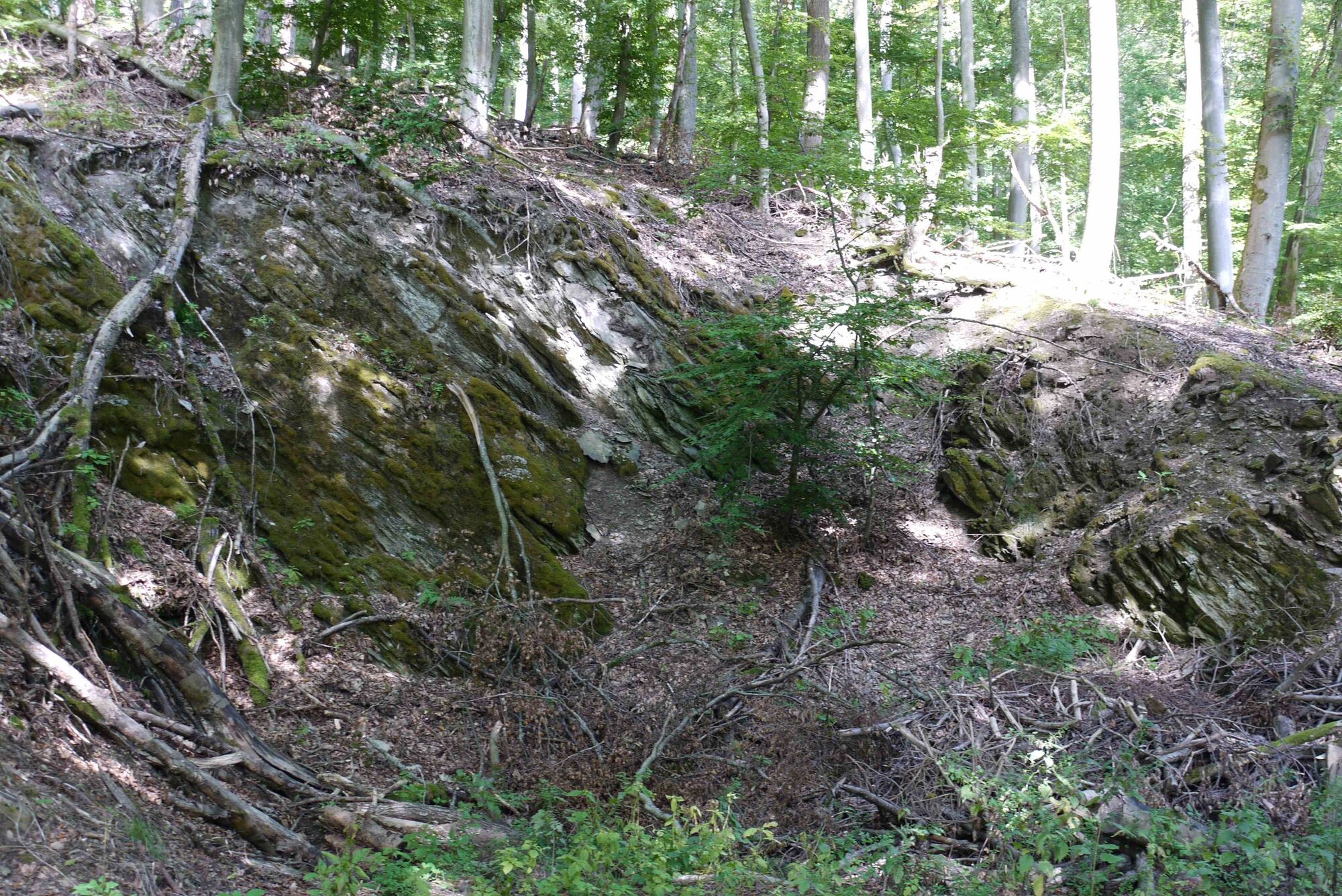 Geologen nennen einen Steinbruch auch einen Aufschluss, denn der Untergrund und damit die Lagerung des Gesteins wird auf diese Weise sichtbar – eben „aufgeschlossen“. Dieser Aufschluss zeigt, dass hier recht viel Unordnung unter dem Waldboden herrscht! Doch es gibt ein System!