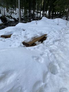 Im Winter ist der Lehrpfad, durch Schnee, schlecht begehbar.