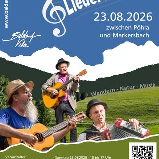 Die Erzgebirgische Liedertour ist jedes Jahr in einer anderen Gegend im schönen Erzgebirge unterwegs, um den Genuss von erzgebirgischer Natur und Musik zusammenzubringen. Am Sonntag, den 23.08.2026 ist das Wander-Natur-Musik-Event zwischen 10 und 17 Uhr in der Region um Pöhla zu Gast. Wichtig: Es gibt keinen festen Start- und Endpunkt. Jeder kann ganz individuell an jeder Station einsteigen und beliebig viele Stationen besuchen, in beliebiger Menge und Richtung. Wir haben wieder eine abwechslungsreiche Strecke zusammengestellt, die Aussicht, Wald, Geschichte, Natur und auch Bergbau verbindet. Die Strecke ist als Wanderung ausgelegt und in mehreren Abschnitten nicht für Radfahrer geeignet. Besucht u.a. die Hundsmartereinkehr am Oberbecken des Pumpspeicherwerkes in Markersbach, den idyllischen Bärskammweg, die Zinnkammern Pöhla, die Sprungschanzen in Pöhla, den Almhof, das Ephraimhaus uvm. Verpflegung wird es an den Stationen durch örtliche Gastronomen und Vereine geben. Die Liedertourtickets können wie immer wieder an den Stationen erworben werden. Alle ab 12 Jahren zahlen 10 € Eintritt. Weitere Informationen gibt es beim Veranstalter der Baldauf Villa in Marienberg, eine Einrichtung des kul(T)our-Betriebes des Erzgebirgskreises. www.baldauf-villa.de Telefon: 03735/22045