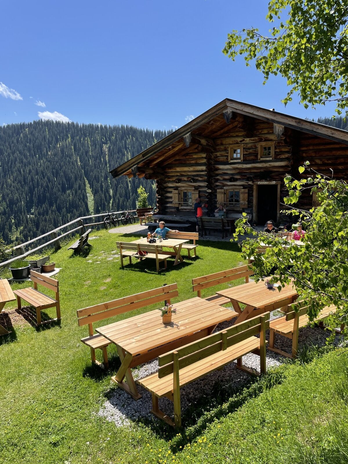Einkehr bei der Lindlalm (und notdürftige Kettenreperatur dank sehr hilfsbereiter Einheimischer) und weiter zu Fuß zum Spielberghorn (Gehzeit ca 1 h).