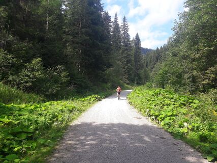 Nach der Jausenstation Knappenstube halten wir uns auf dem Hinweg links bis zur Abzweigung Lindlalm. Das kommende Teilstück ist vom TVB als Schiebestrecke ausgewiesen und das hatte auch einen Grund: beim normalen MTB ist die Kette gerissen, für's E-Bike war es zu steil (außer man hat sein E-Bike sehr, sehr gut im Griff).