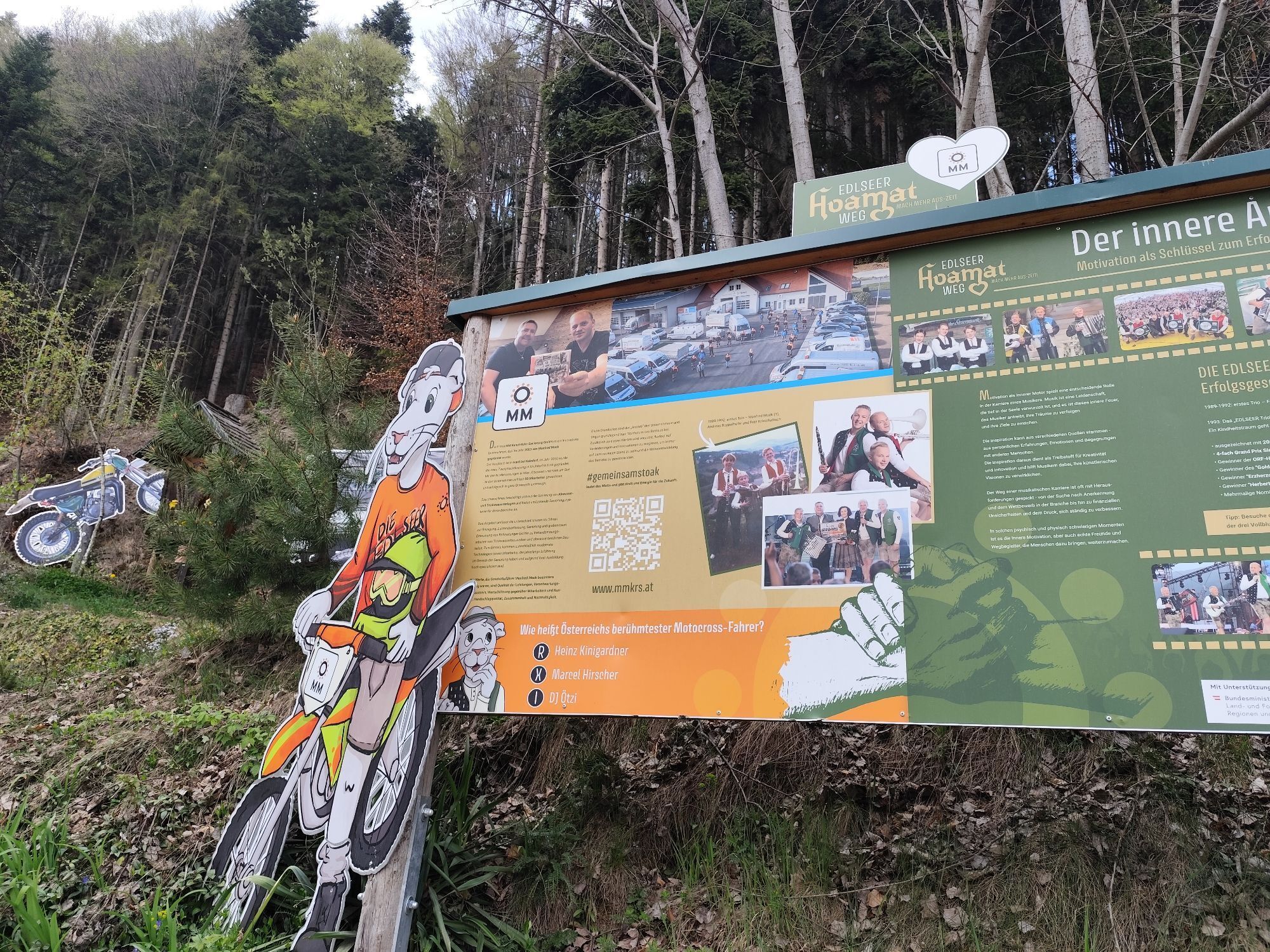 "Der Edelseer" HOAMAT-Wanderweg befindet sich in der Marktgemeinde Birkfeld, der Heimatgemeinde der bekannten Musikgruppe. Entlang des Weges befinden sich immer wieder verschiedene Stationen mit Informationen zur Band. Aber auch Infos zur Gemeinde Birkfeld und vor allem auch zum Wirken Peter Roseggers, dem bekanntesten Dichter der Region.