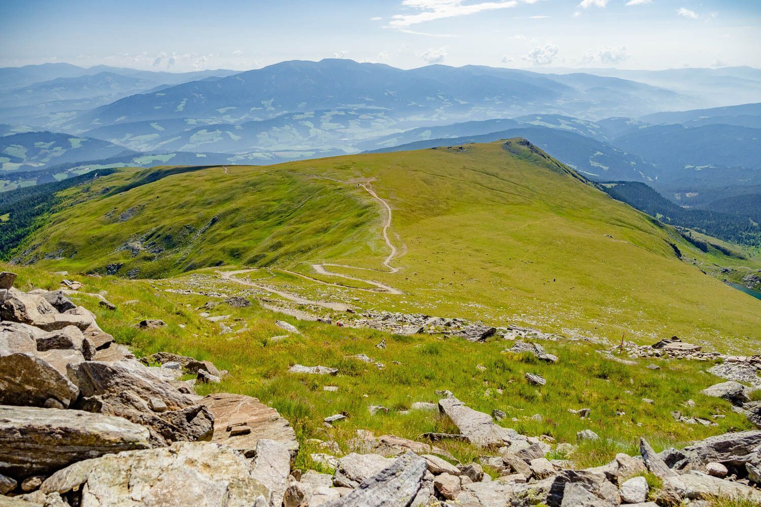 Genießt eine konditionsfordernde, aber wunderschöne Wanderung auf den König der Seetaler Alpen, den Zirbitzkogel. Hier warten mehrere Hotspots auf euch: Gleich am Beginn trefft ihr in der Nähe der unbewirtschafteten Linderhütte auf ein beeindruckendes Steinfeld. Der Lindersee bietet im Anschluss einen willkommenen Kraftplatz, um die Kräfte zu mobilisieren. Am Zirbitzkogel erwartet euch dann das höchstgelegene Schutzhaus des Murtals, das nur wenige Höhenmeter vom Gipfelkreuz entfernt liegt. Genießt hier die überwältigende Aussicht über den Tälerrand der Seetaler Alpen. Beim Abstieg könnt ihr bei Bedarf bei der Rothaidenhütte einkehren, zu der die einen kleiner Umweg erforderlich ist, oder euch zum Abschluss auf der Sabathyhütte verwöhnen lassen.