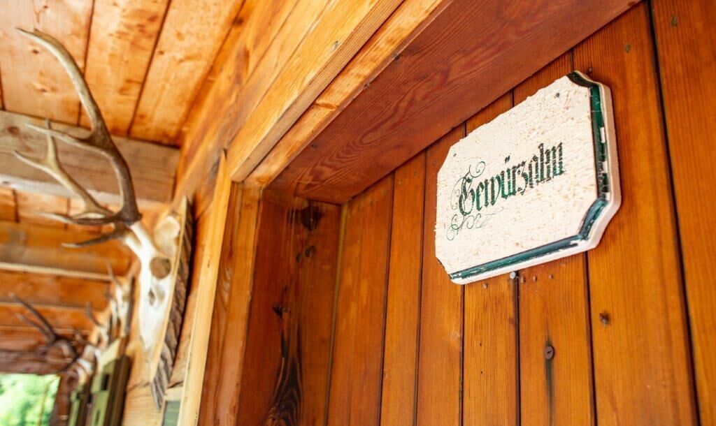 Über Wiesen hoch, immer der rotweißroten Markierung folgend, dem steilen Steig durch den Wald bis wir auf einer Forstraße zur Gewürzalm Hütte gelangen.