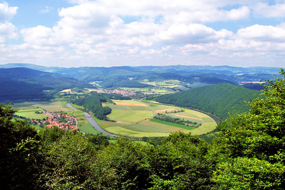 Das ist eine echte Grenzerfahrung, denn zwischen Wahlhausen und Lindewerra bildet die Werramitte die Grenze zwischen Hessen und Thüringen. Die Werra schwingt in großen Mäandern zwischen den gegenüberliegenden Berghängen des Meißner-Kaufunger-Waldes und des Eichsfeldes.