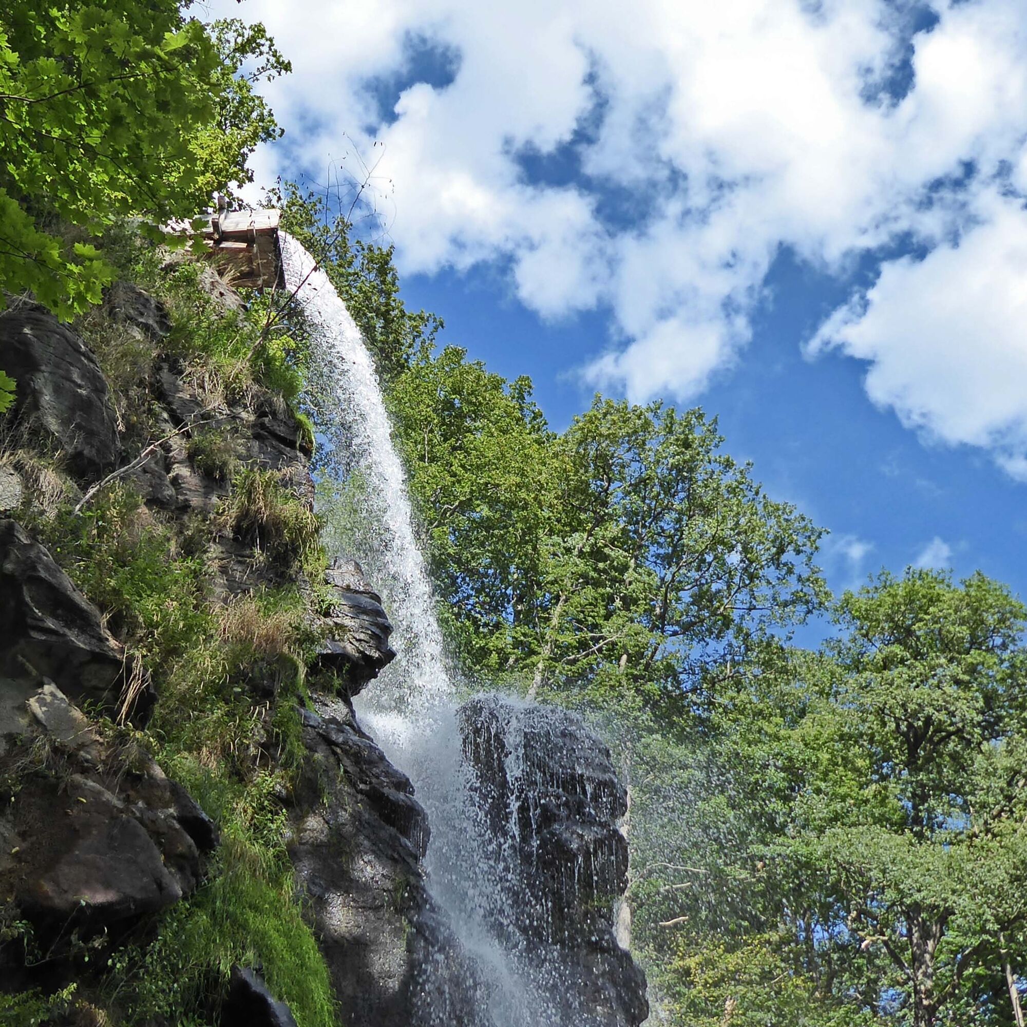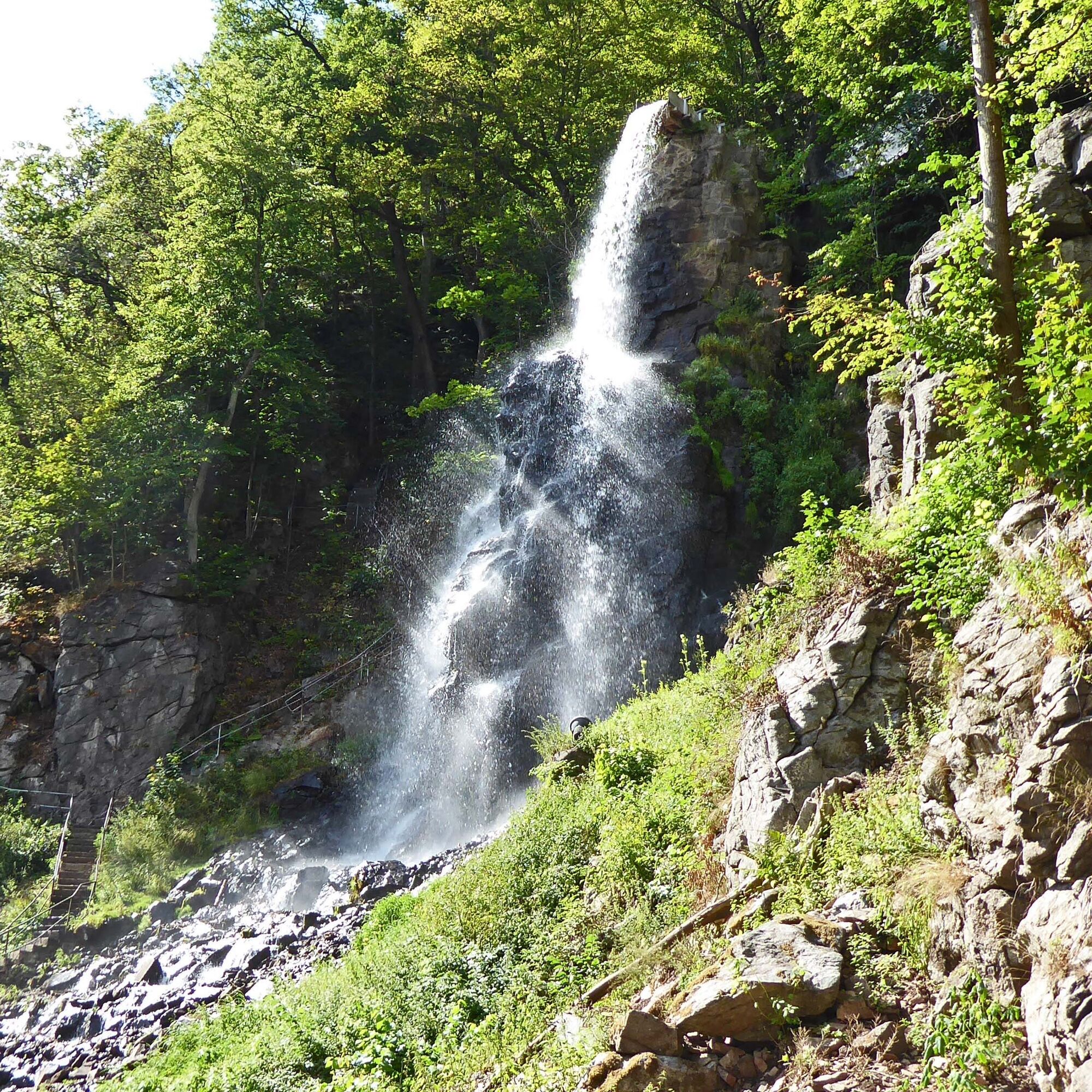 Sie starten die Wanderung am Parkplatz Wasserfall. Der Weg führt Sie zum Wahrzeichen von Trusetal, den Wasserfall. Erklimmen Sie über die 228 Stufen den Wasserfall. Von der Plattform, dem höchsten Punkt des Wahrzeichens, haben Sie einen atemberaubenden Blick nach unten. Es ist ein interessantes Schauspiel, zu sehen, wie die Wassermassen 58 m in die Tiefe stürzen.