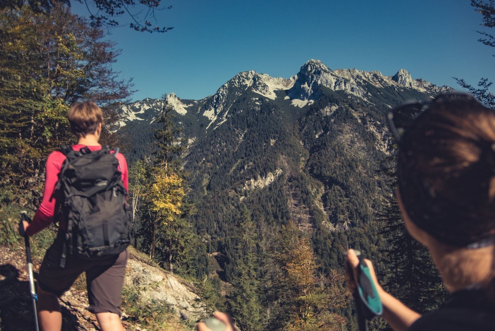 Strengthened from the berakfast you follow the serpentines downhill to Hinterbärenbad (829m). You can take a rest at the Hinterbärenbad- Anton Karg Haus to gain energy for the next ascent. From here you follow the "Bettlersteig", cross a few trenches and via partly steep passages (secured by steel ropes) taking you to point 1356m. Turn right and follow the path via Gamskogel (1449m) to Weinbergerhaus (1272m), where you stay the third night. Besides fantastic views at Kufstein and the Inn valley, you get spoiled with tyrolean delicacies.